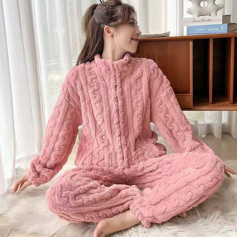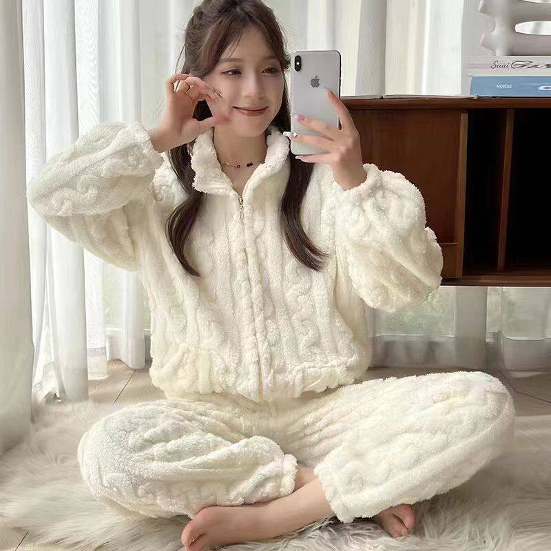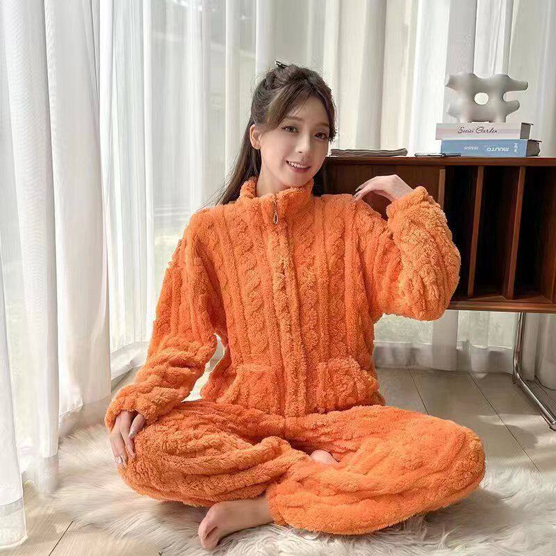 Коралловая бархатная зимняя флисовая удерживающая тепло пижама, цветной фланелевый комплект с молнией, популярно в интернете