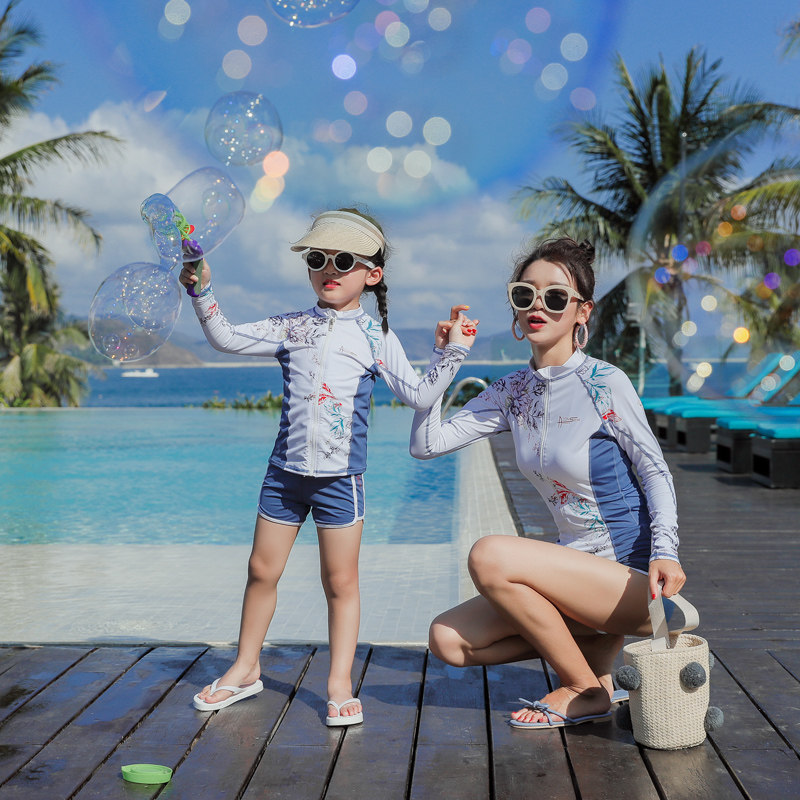 Брендовый лонгслив, раздельный комплект, купальник, защита от солнца, семейный стиль, 3 предмета, по фигуре