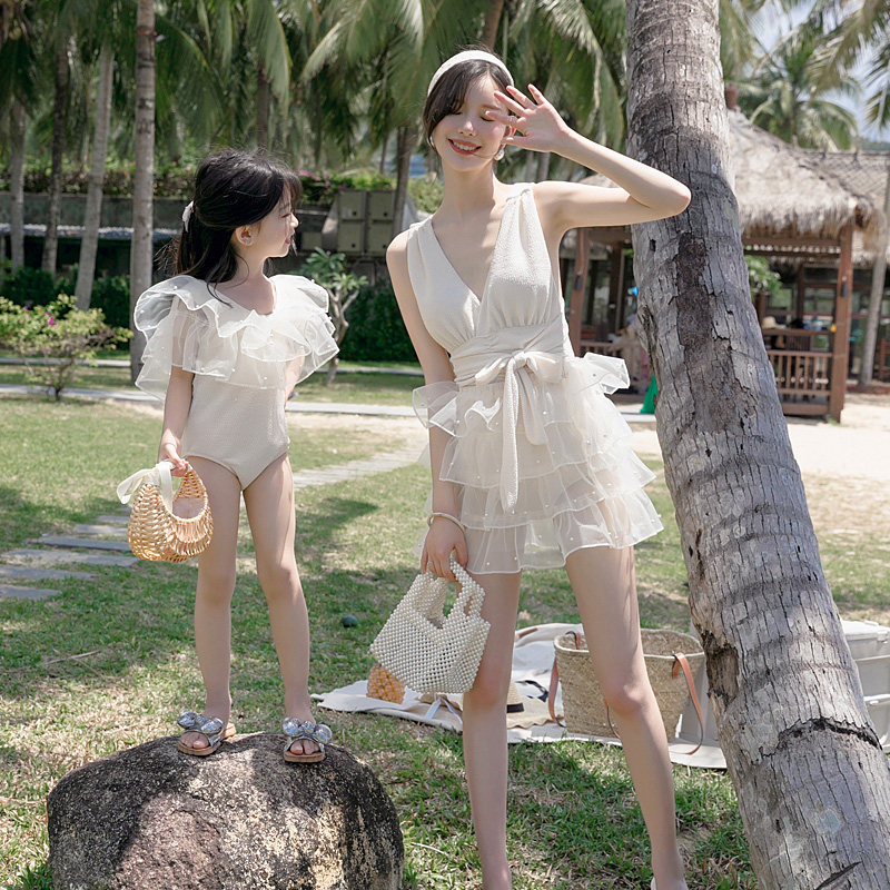 Купальник, шифоновый детский белый наряд маленькой принцессы, платье, семейный стиль, большой размер