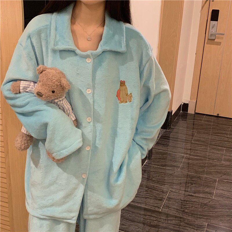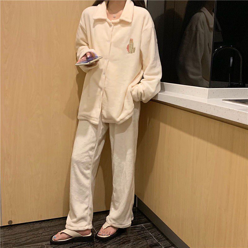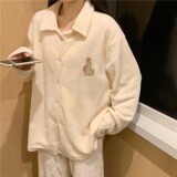 Фланелевый кардиган, флисовая демисезонная пижама, японский милый комплект, увеличенная толщина, свободный крой, простой и элегантный дизайн