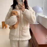Коралловая бархатная зимняя демисезонная пижама, брендовый комплект для выхода на улицу, коллекция 2023, популярно в интернете, увеличенная толщина