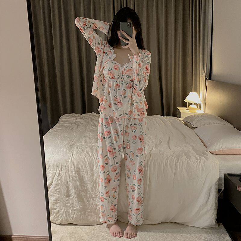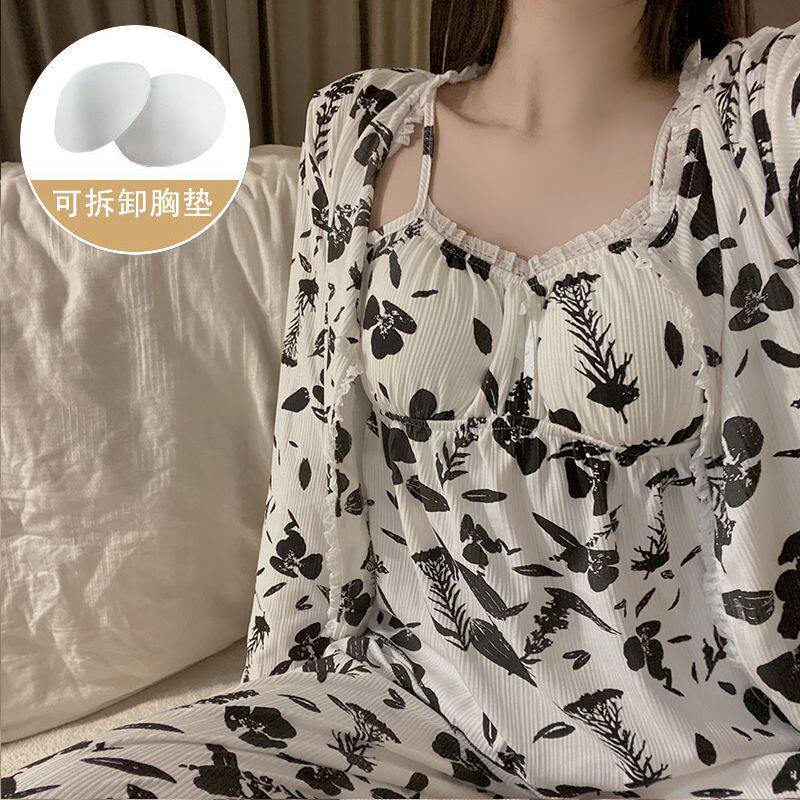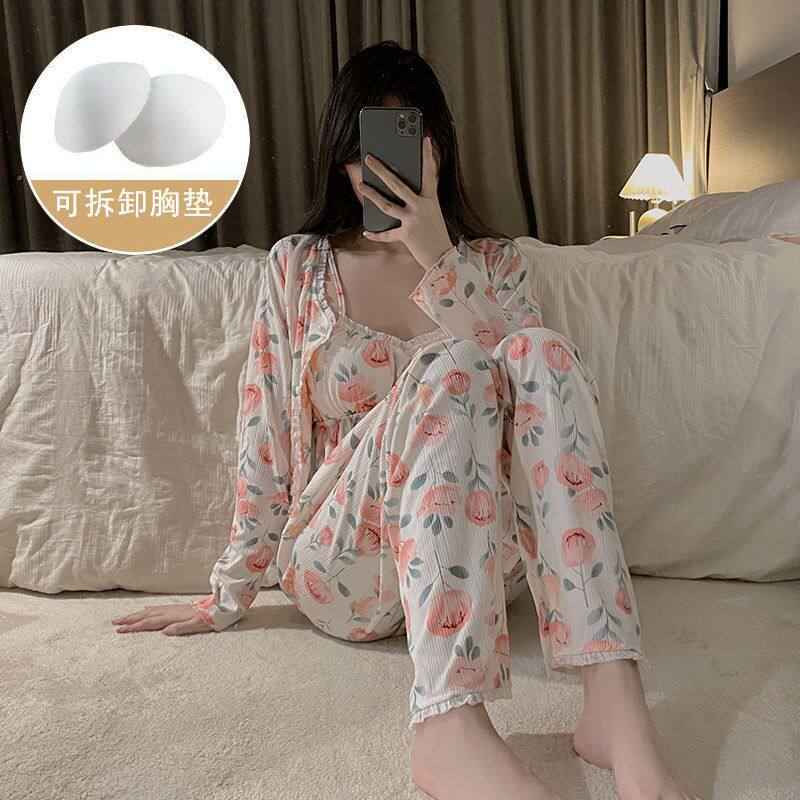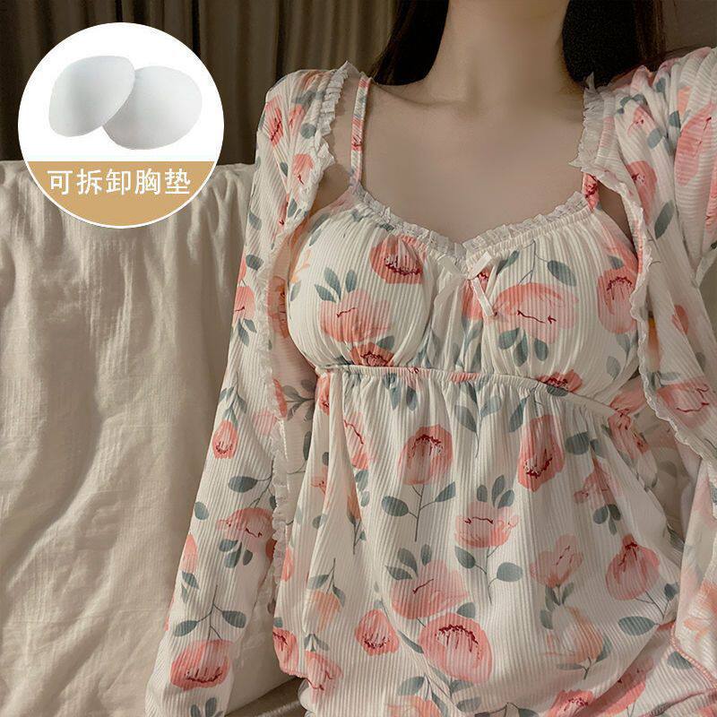 Демисезонный высококачественный сексуальный лонгслив, пижама, комплект, съемный топ с чашечками, 3 предмета