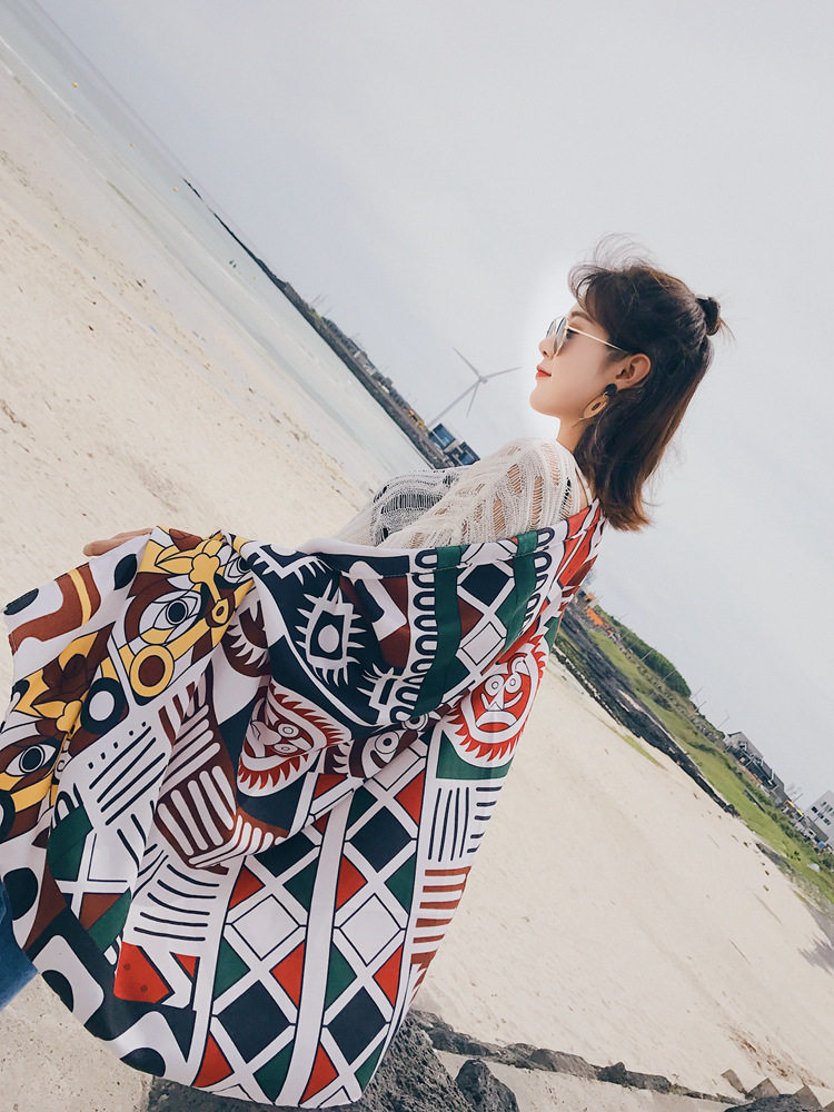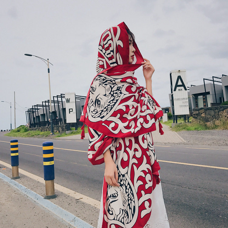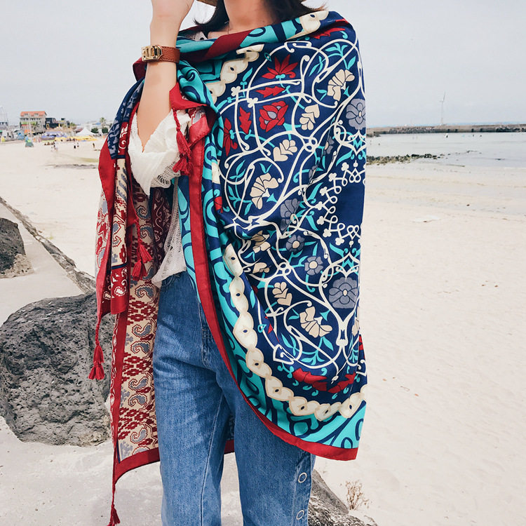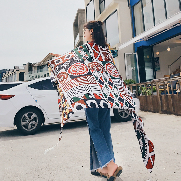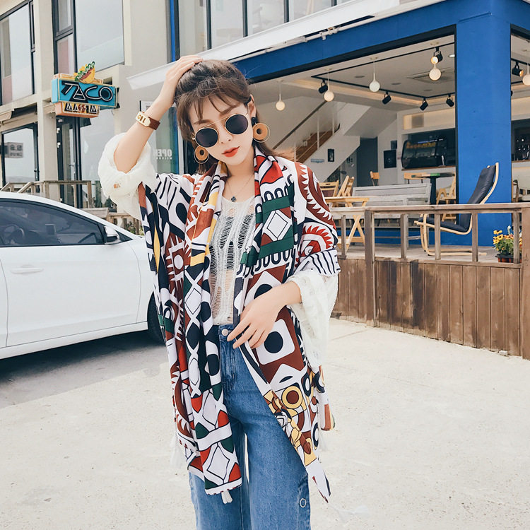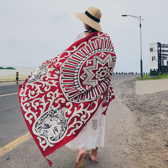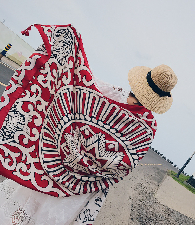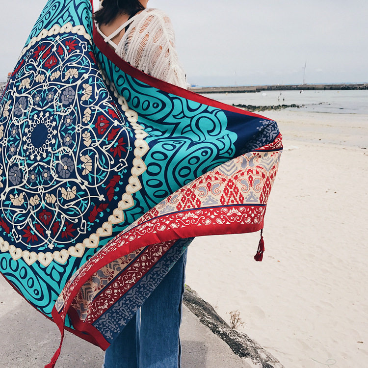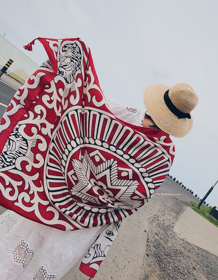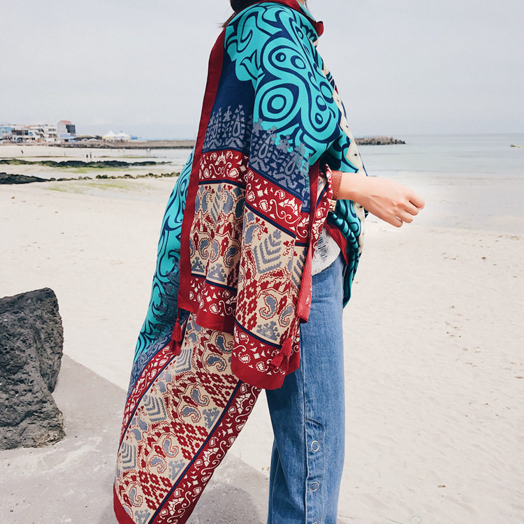 Этническая накидка для путешествий, пляжный ретро шарф, этнический стиль, из хлопка и льна