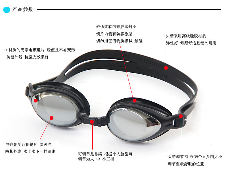 Водонепроницаемые очки для плавания для плавания подходит для мужчин и женщин без запотевания стекол, снаряжение