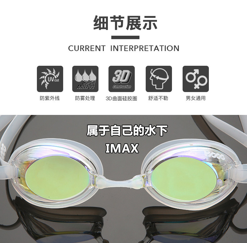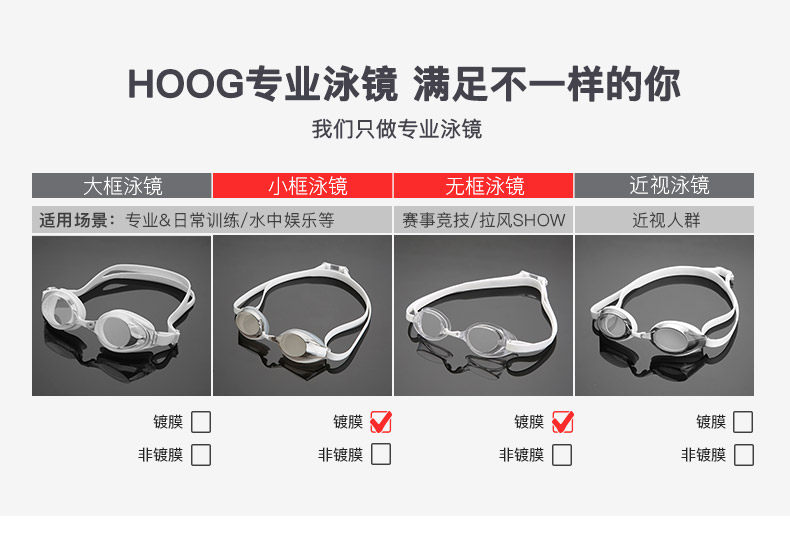 Hoog Professional Swamp Moster High -Definition Водонепроницаемый туман антигультравиолетовый безрамновый безрамная безрамная рама двойной тренировки для плавания зеркало