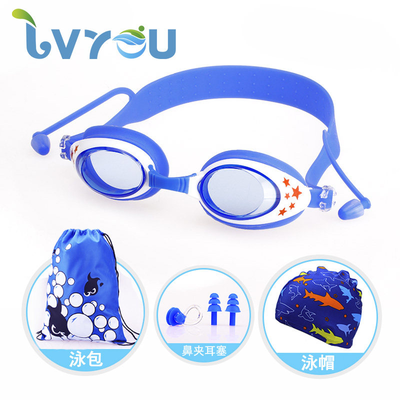 绿游 Детская плавательная шапочка для мальчиков, детский водонепроницаемый комплект, очки для плавания без запотевания стекол, снаряжение