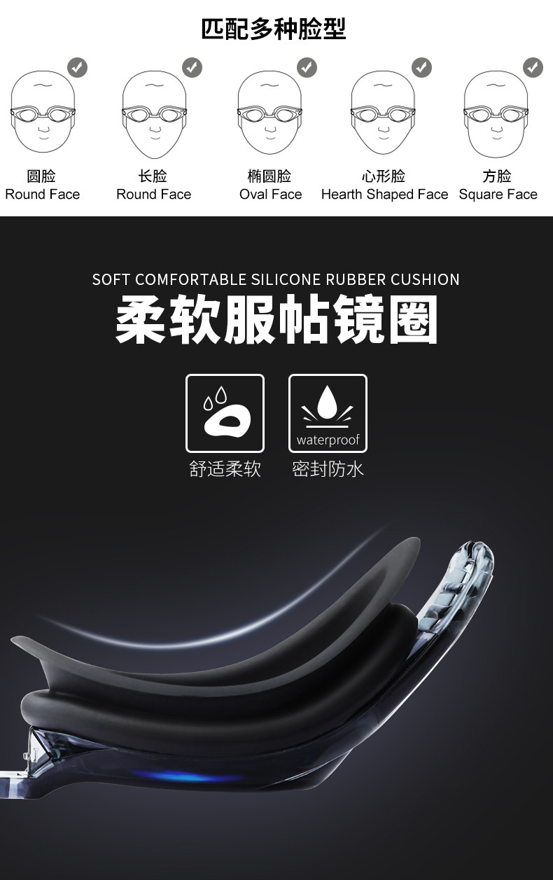 Профессиональное водонепроницаемое универсальное снаряжение без запотевания стекол для плавания подходит для мужчин и женщин