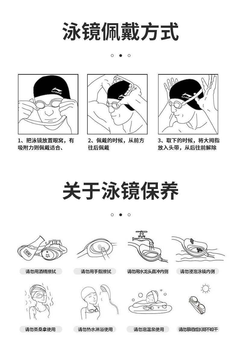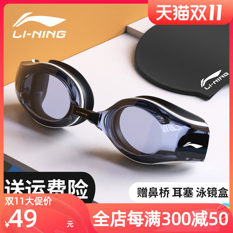 Li Ning, водонепроницаемые профессиональные очки для плавания без запотевания стекол подходит для мужчин и женщин, снаряжение, плавательная шапочка, комплект, дайвинг