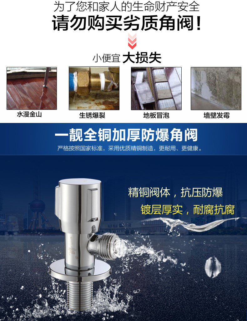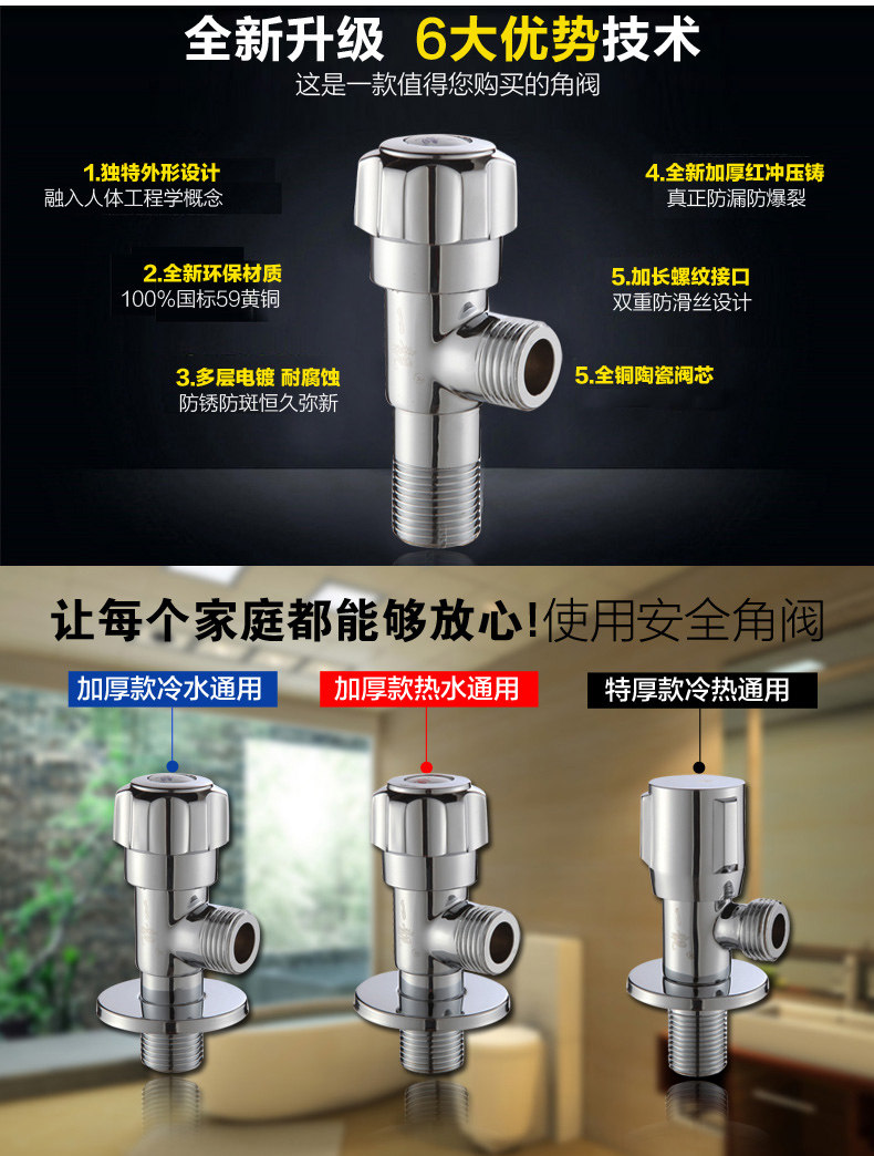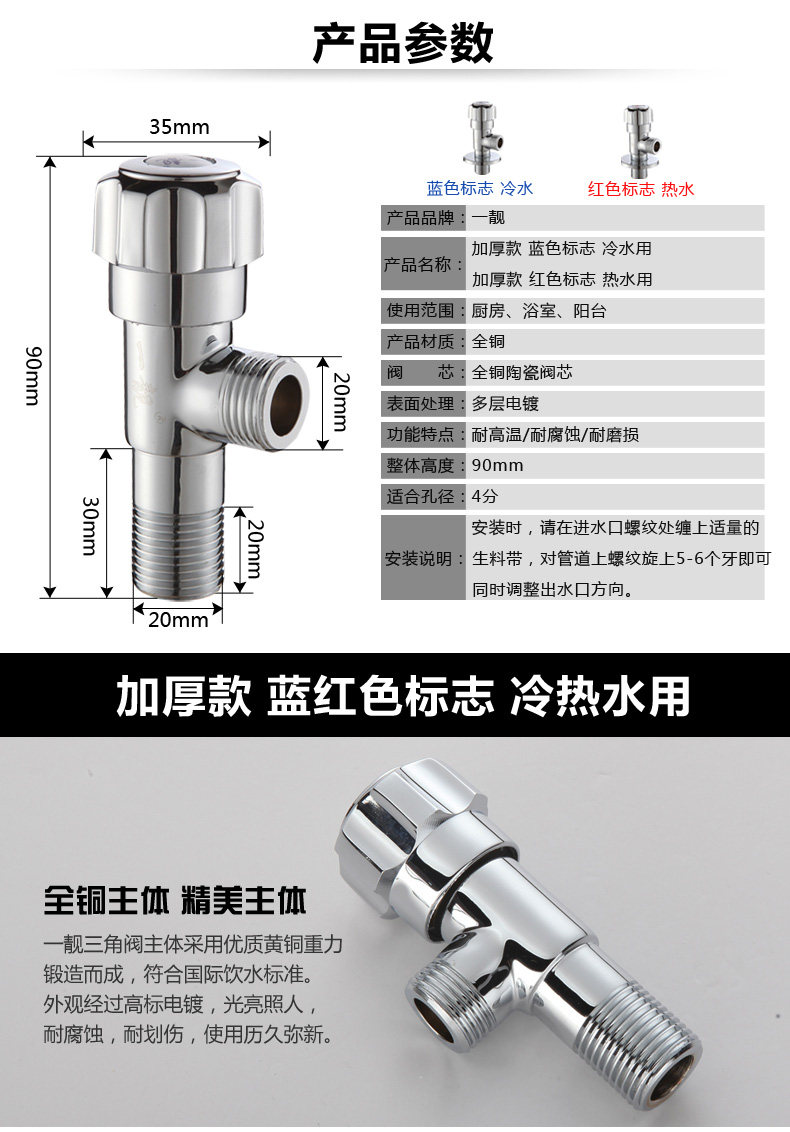 Полная медная утолщенная холодная и горячая вода треугольник Клапан водонагреватель резервуарная бак резервуарная резервуар вода остановка вода Стоп вода Увеличение треугольник клапана Дом Треугольник треугольник