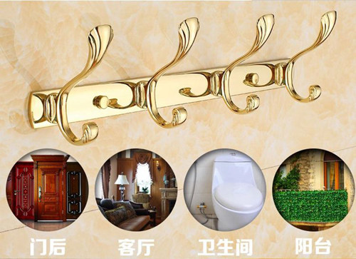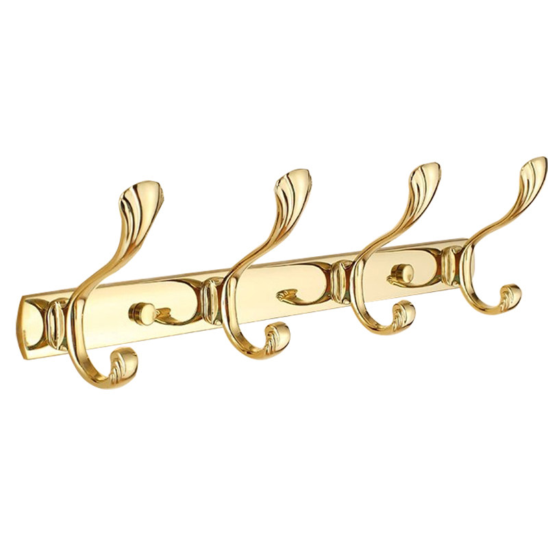 Ряд длинных золотых подвесных крючков, связанных с одеждой, подключенной к европейскому кулонку для ванной комнаты супер из нержавеющей стали