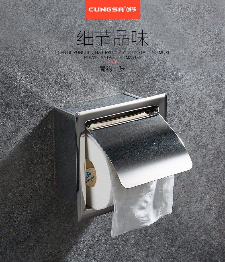 Chuangsha 304 из нержавеющей стали Скрытая бумажная стойка Скрытая бумага в коробку с ткани стен