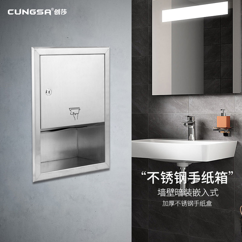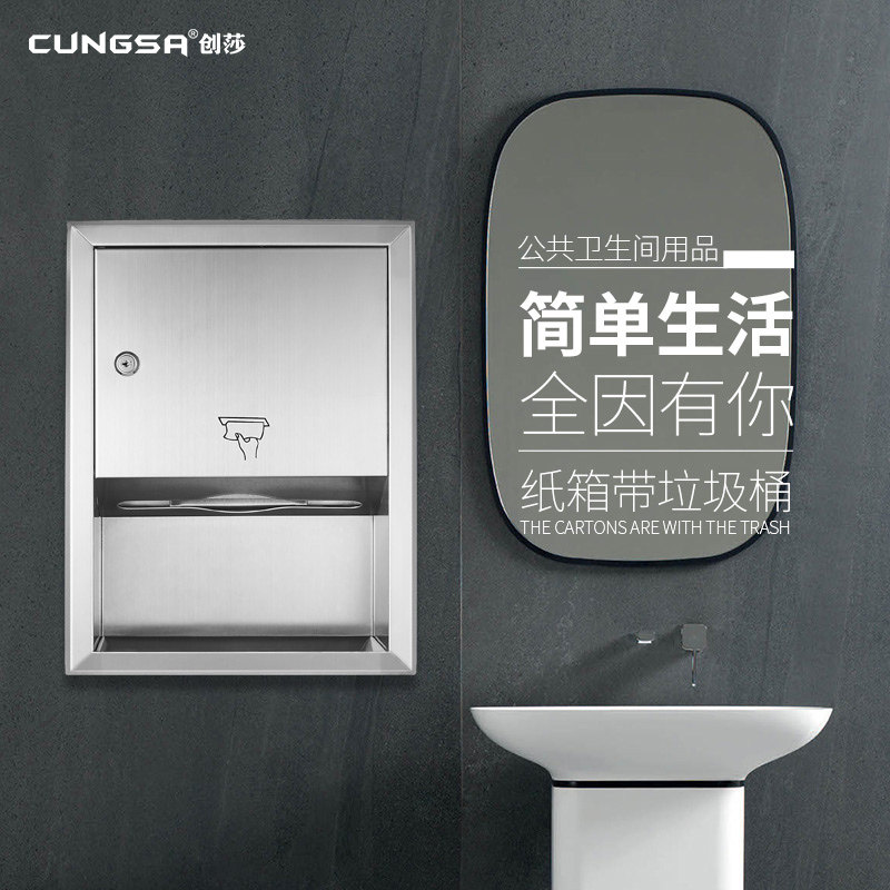 Коммерческий туалетный встроенный на стене из нержавеющей стали протирайте картонную коробку для мусорного бака.