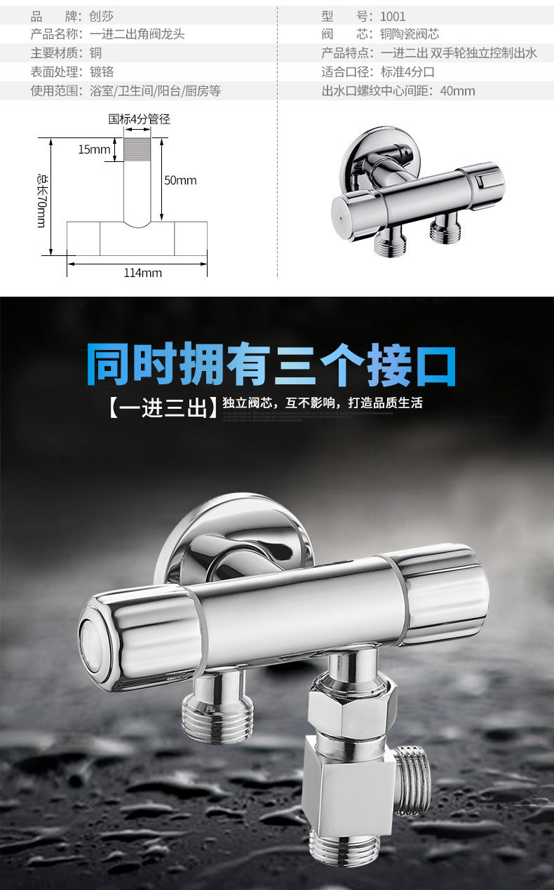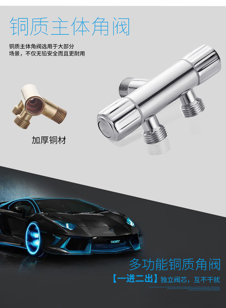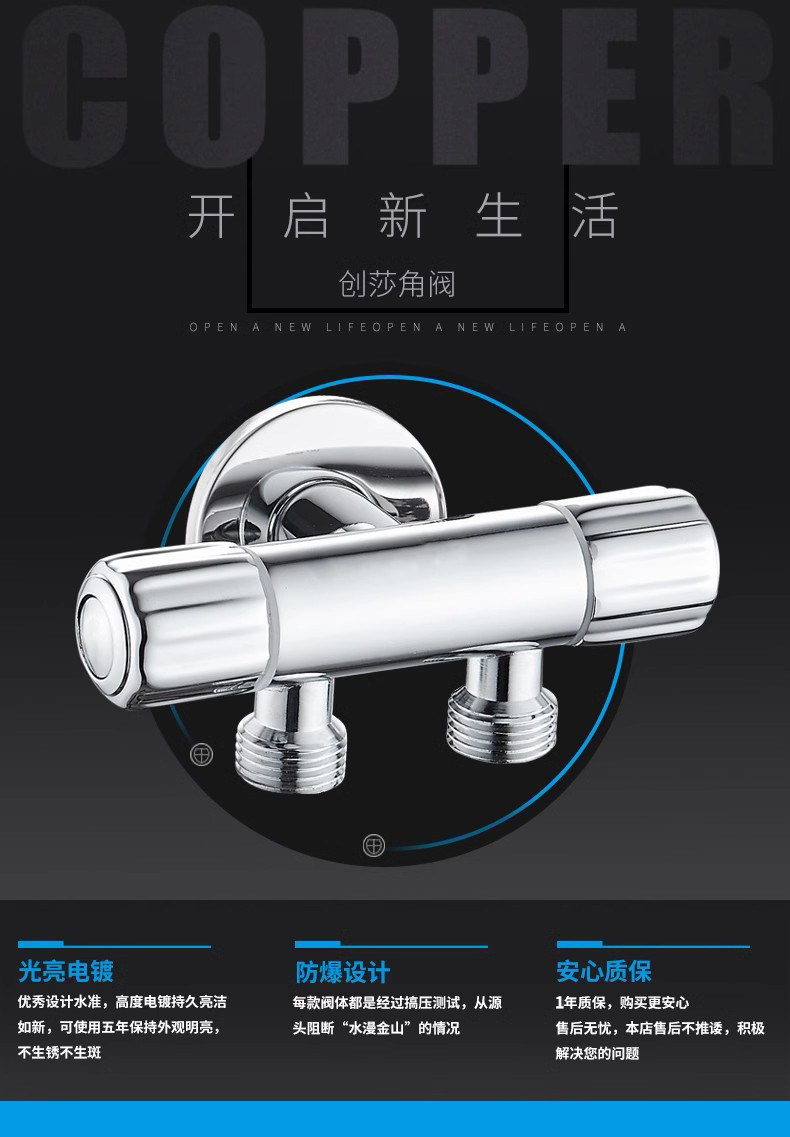 Медный треугольный клапан в одном -приглашенном клапанном клапане Клапан с тремя угловым клапаном выключатель