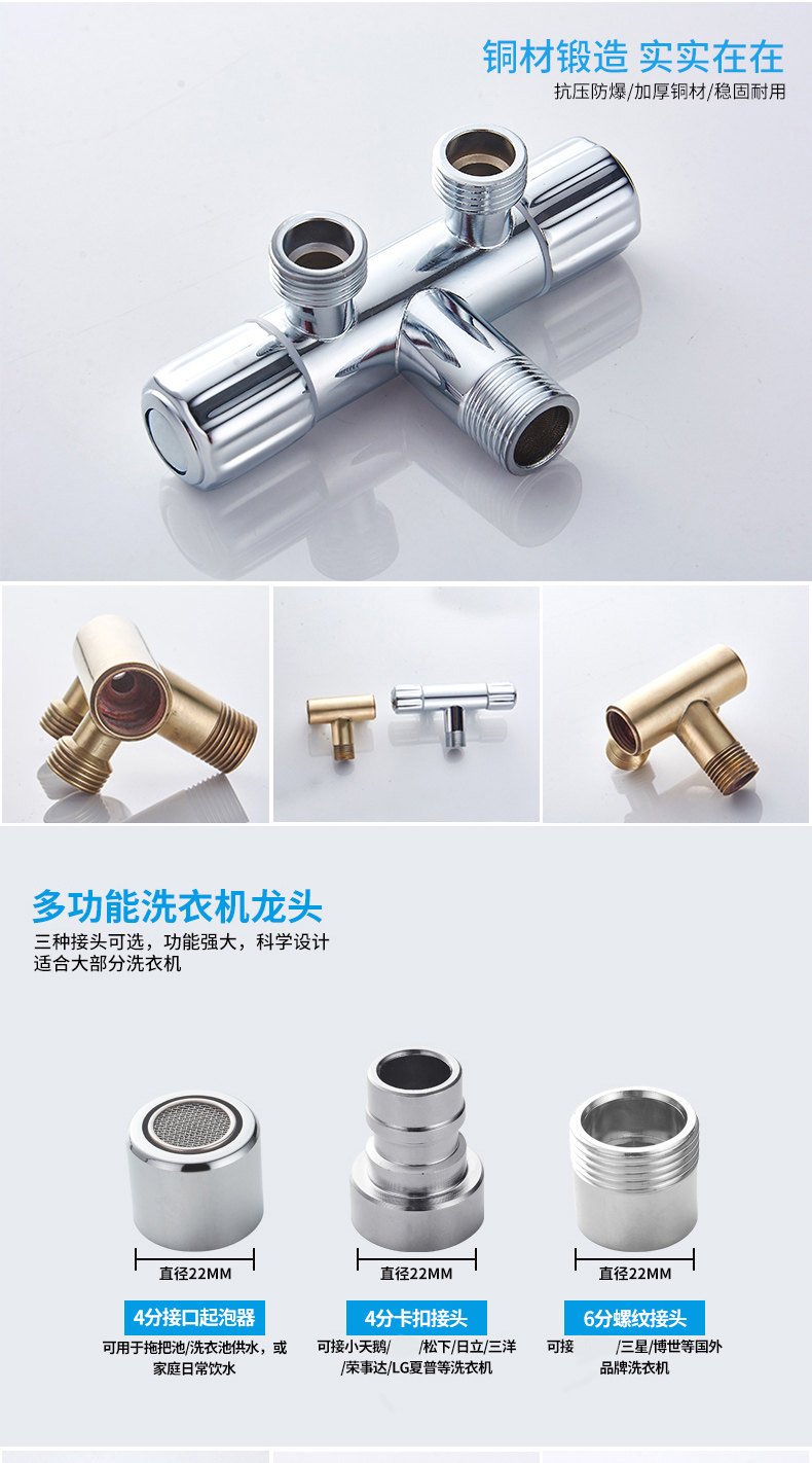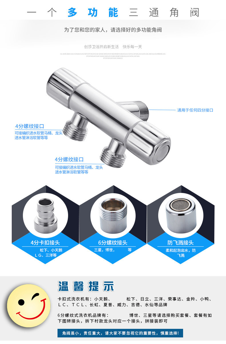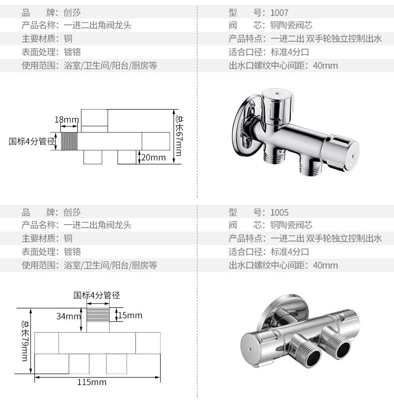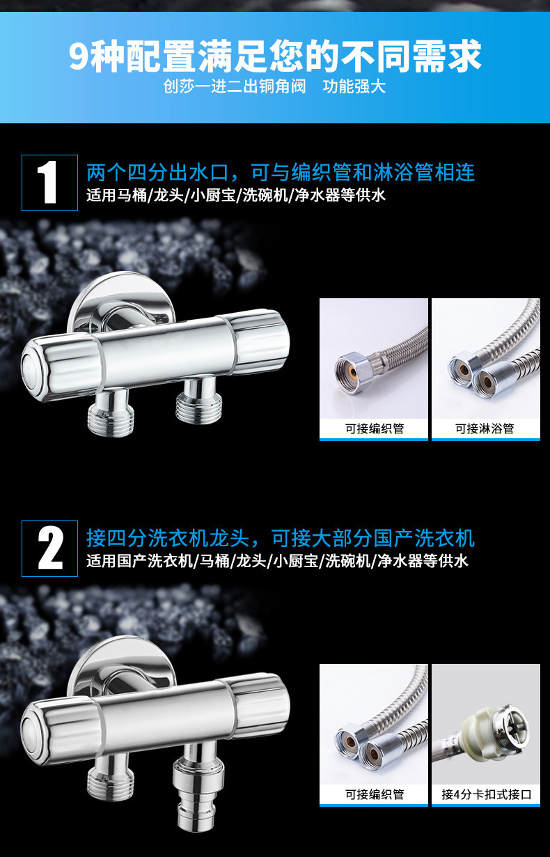 Медный треугольный клапан в одном -приглашенном клапанном клапане Клапан с тремя угловым клапаном выключатель