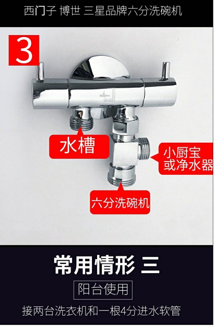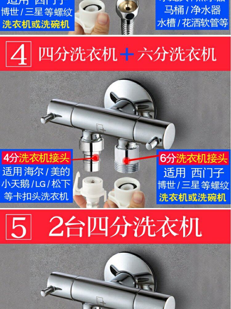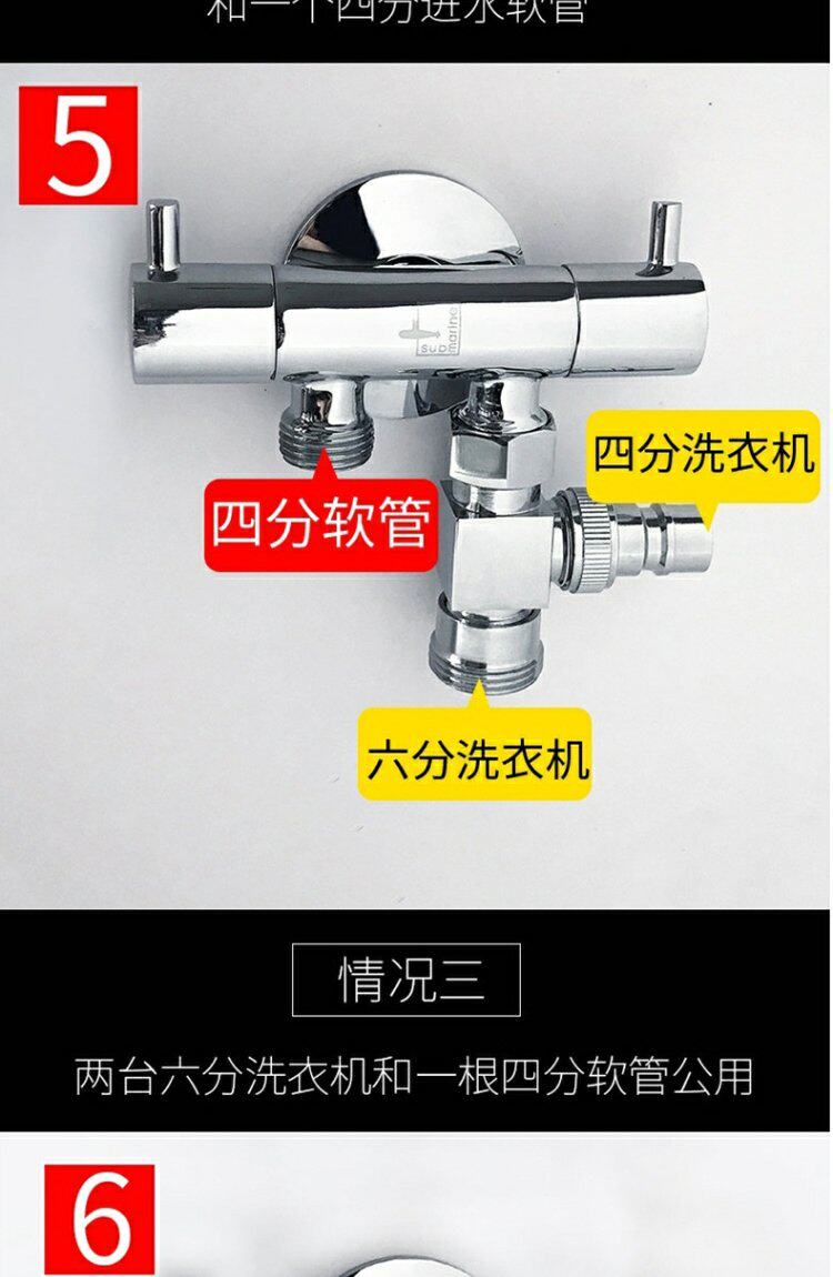 - Подключите 1 водопроводную трубу + 2 шеститочечные стиральные машины.
