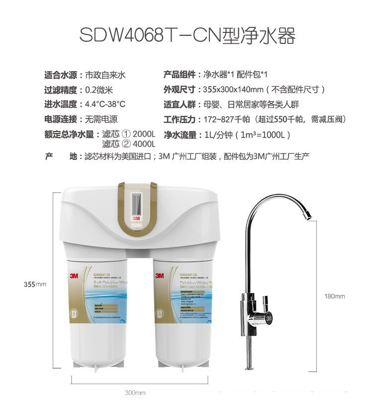 3M Серия мудрости Gemini Net 4068T Home Water Purifier Kitchen Water Water Machine