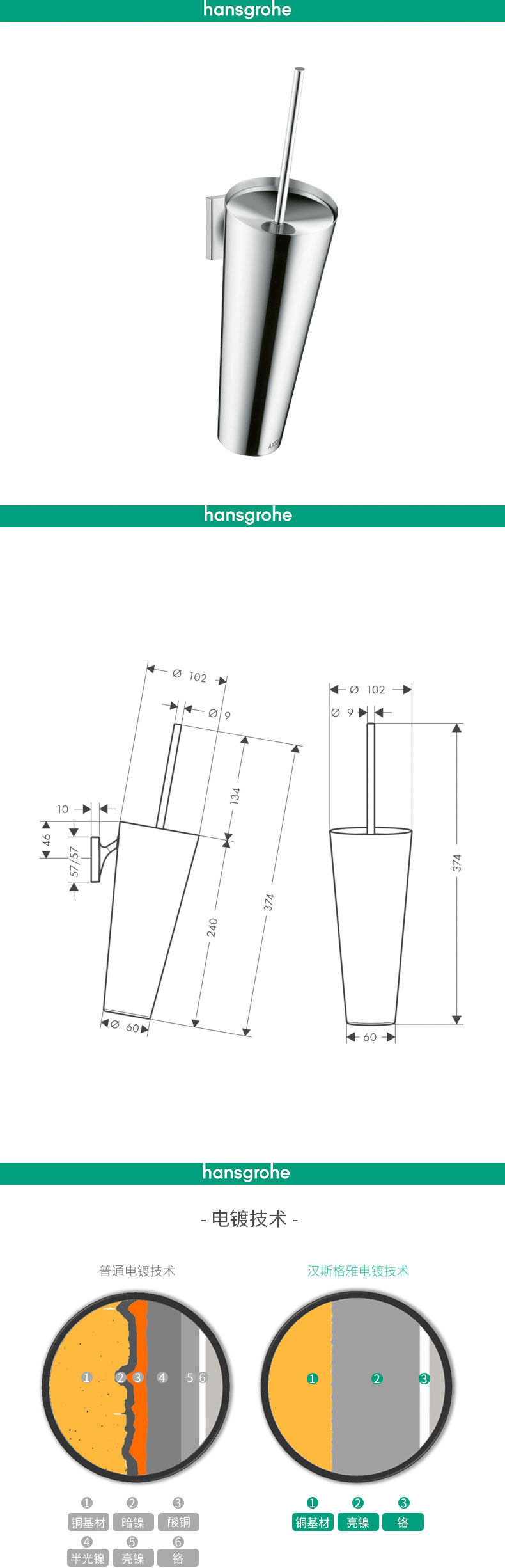 汉斯格雅 Стоичная щетка для туалетов в яшэнге 42735000