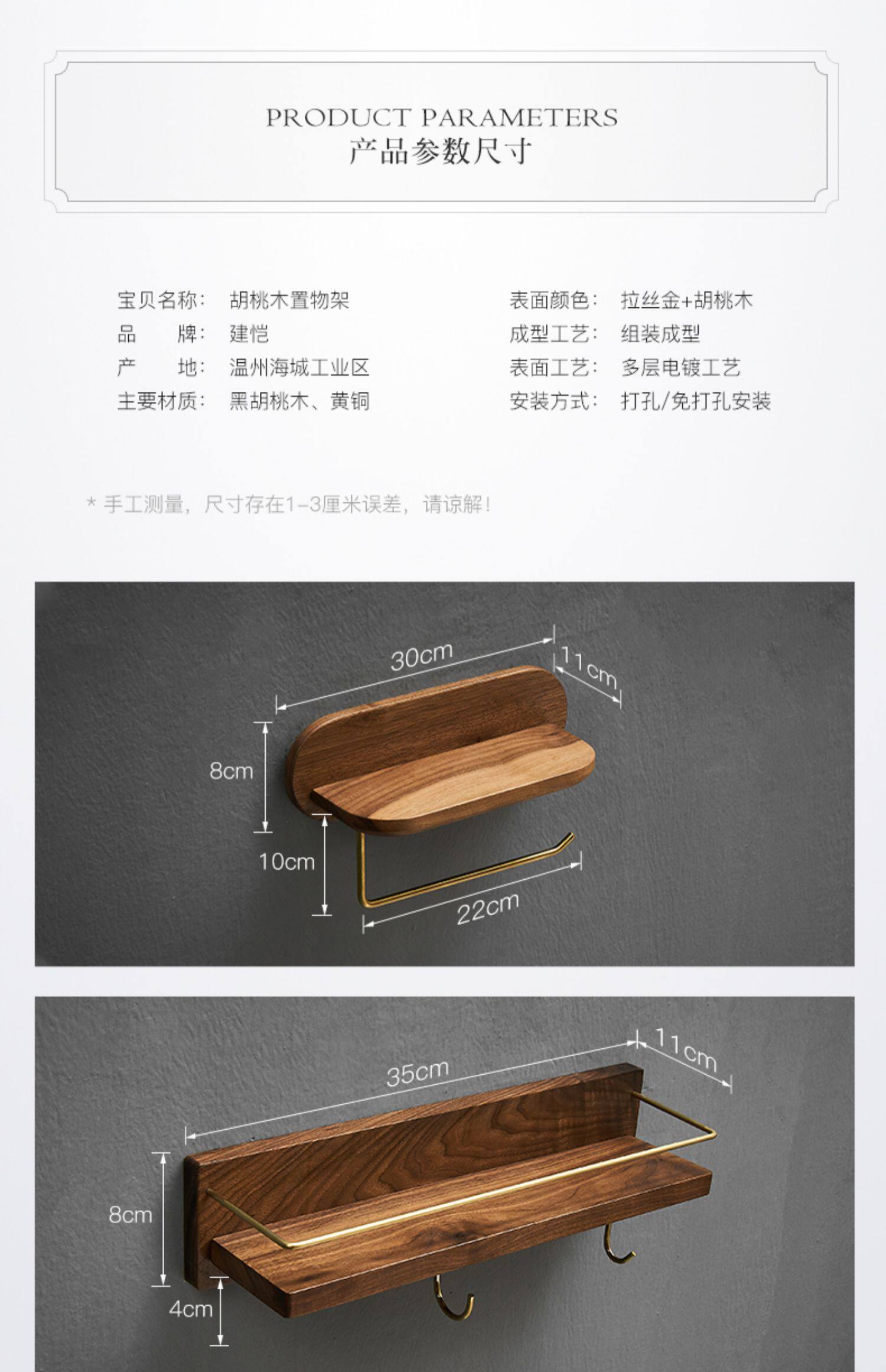 Черный ореховый орех с твердым деревом -безрезультатно, туалетная туалет, настенные полки, умывальник для хранения косметики