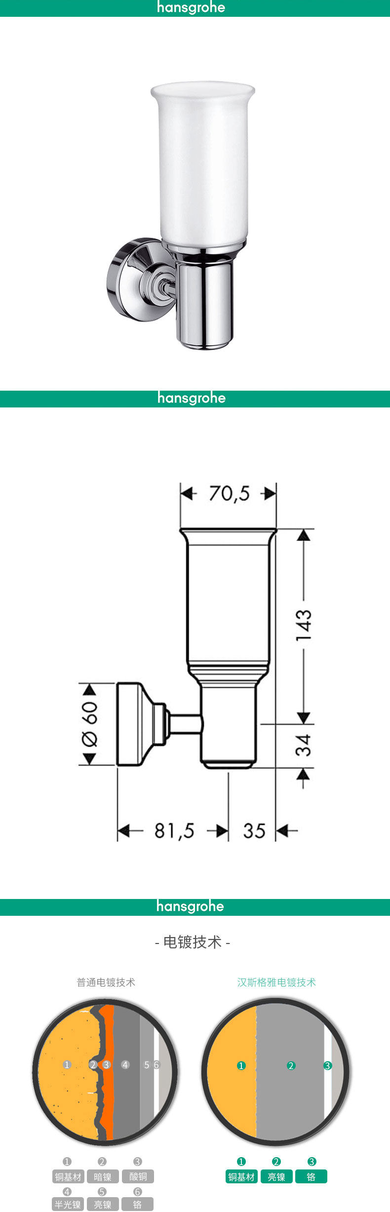 汉斯格雅 Hansgrohe Chrome -плановая настенная лампа 42056000