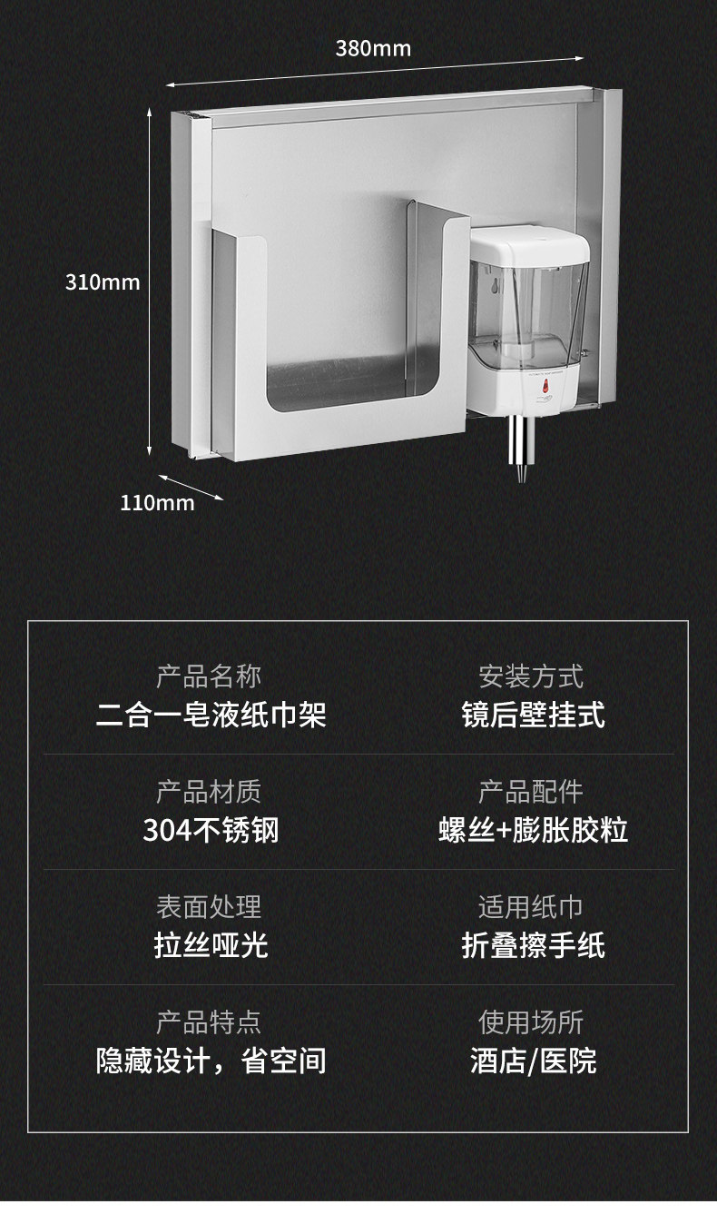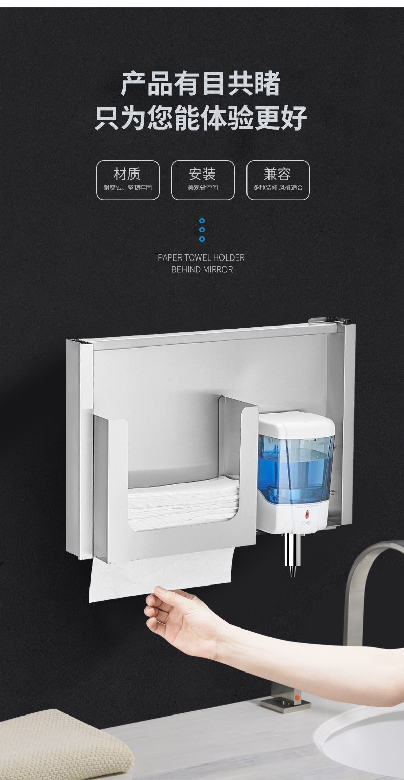 Салфетки, зеркало из нержавеющей стали, встроенное мыло