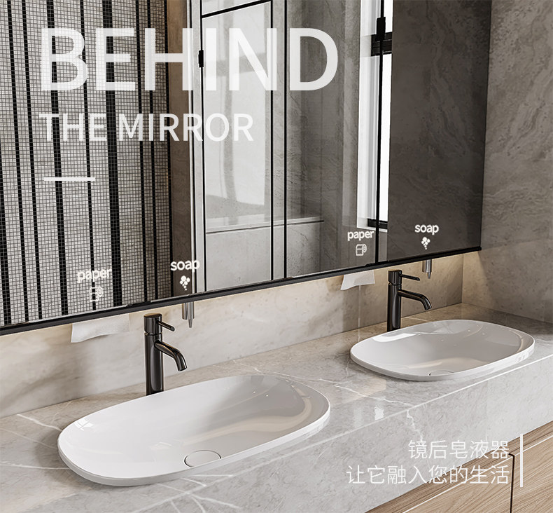 - Модель B Установка зеркала заднего мыла дозатор + бумажный корзин