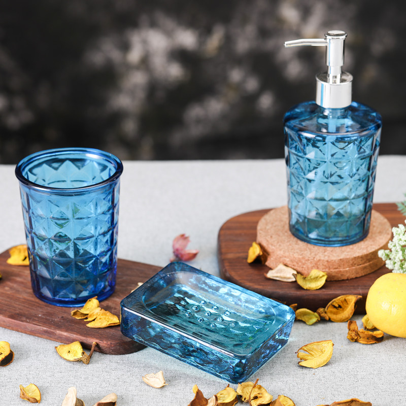 Оригинальный импортный стеклянный комплект, ополаскиватель для рта, мыло, мыльница, гигиенический санитайзер для рук, Испания, 3 предмета