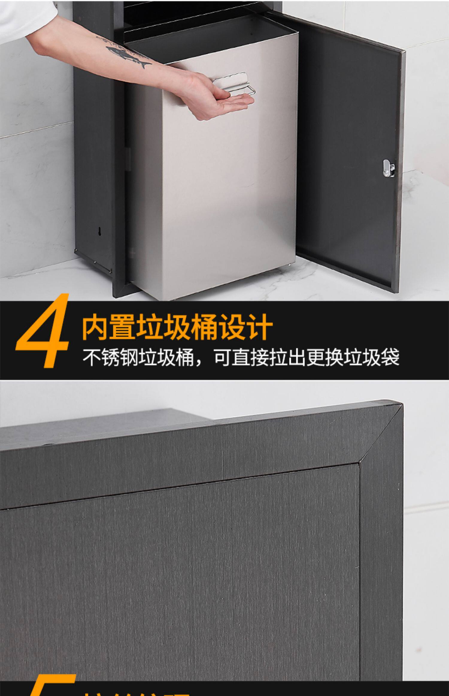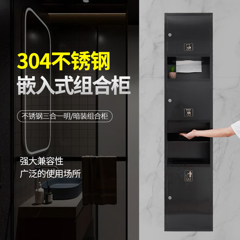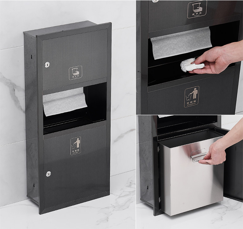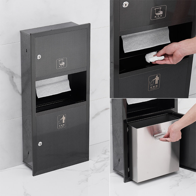 Встроенное черное мусорное ведро из нержавеющей стали, коробка, «три в одном»