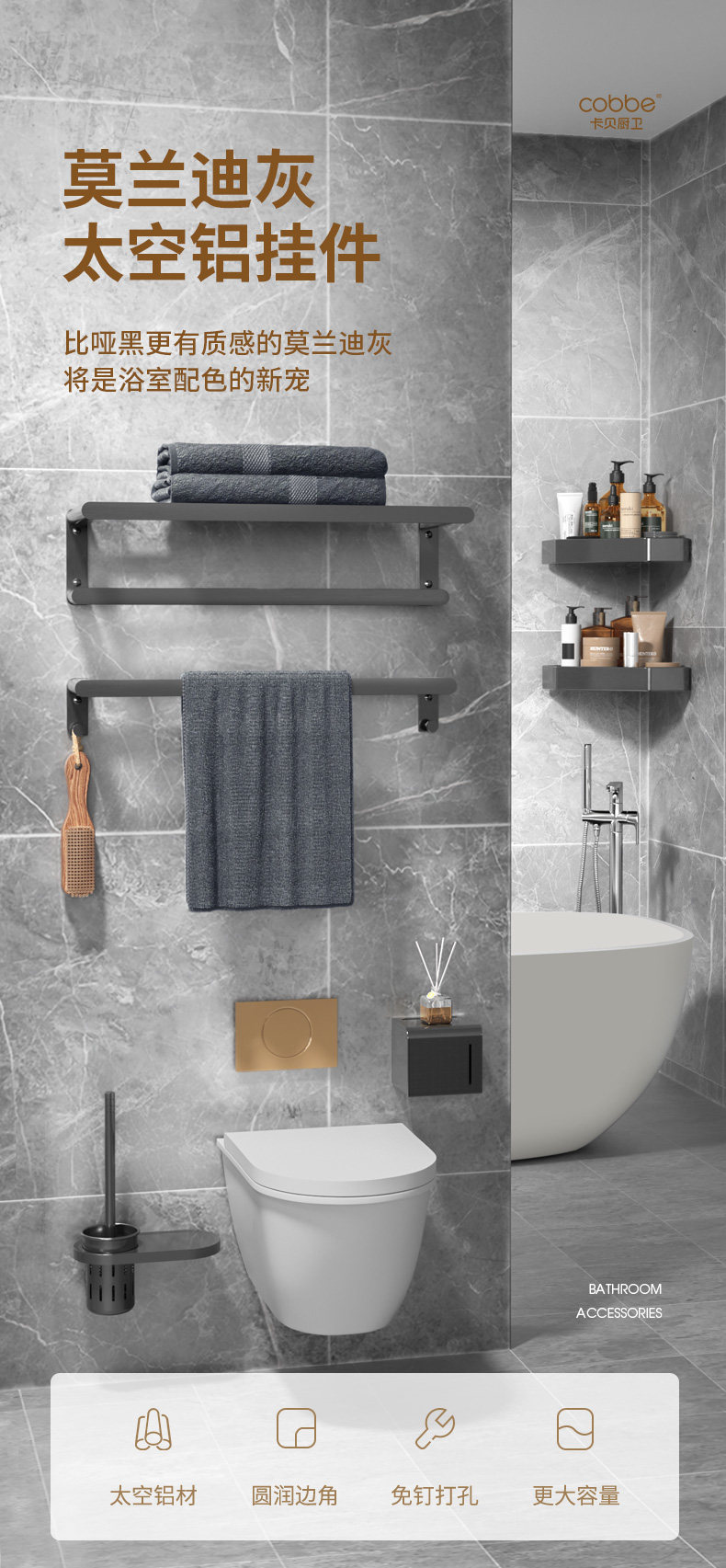 Кабеган Серые отверстия -Бесплатная ванная полотенце туалет туалет туалет ванную полотенце Поставление стойка Аппаратное оборудование для ванной комнаты подвеска для ванной комнаты