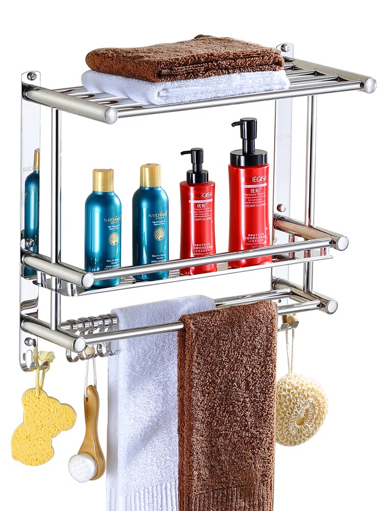 Вешалка для полотенец для ванной комнаты, перфорированная, из нержавеющей стали 304, настенная полка для хранения в ванной, унитаз, унитаз, 2 слоя, без перфорации