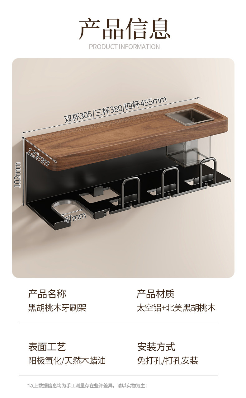 Подставка для зубных щеток Youqin из орехового дерева, настенная подставка для фена для ванной, электрическая зубная щетка, подвесная стойка для зубной чашки