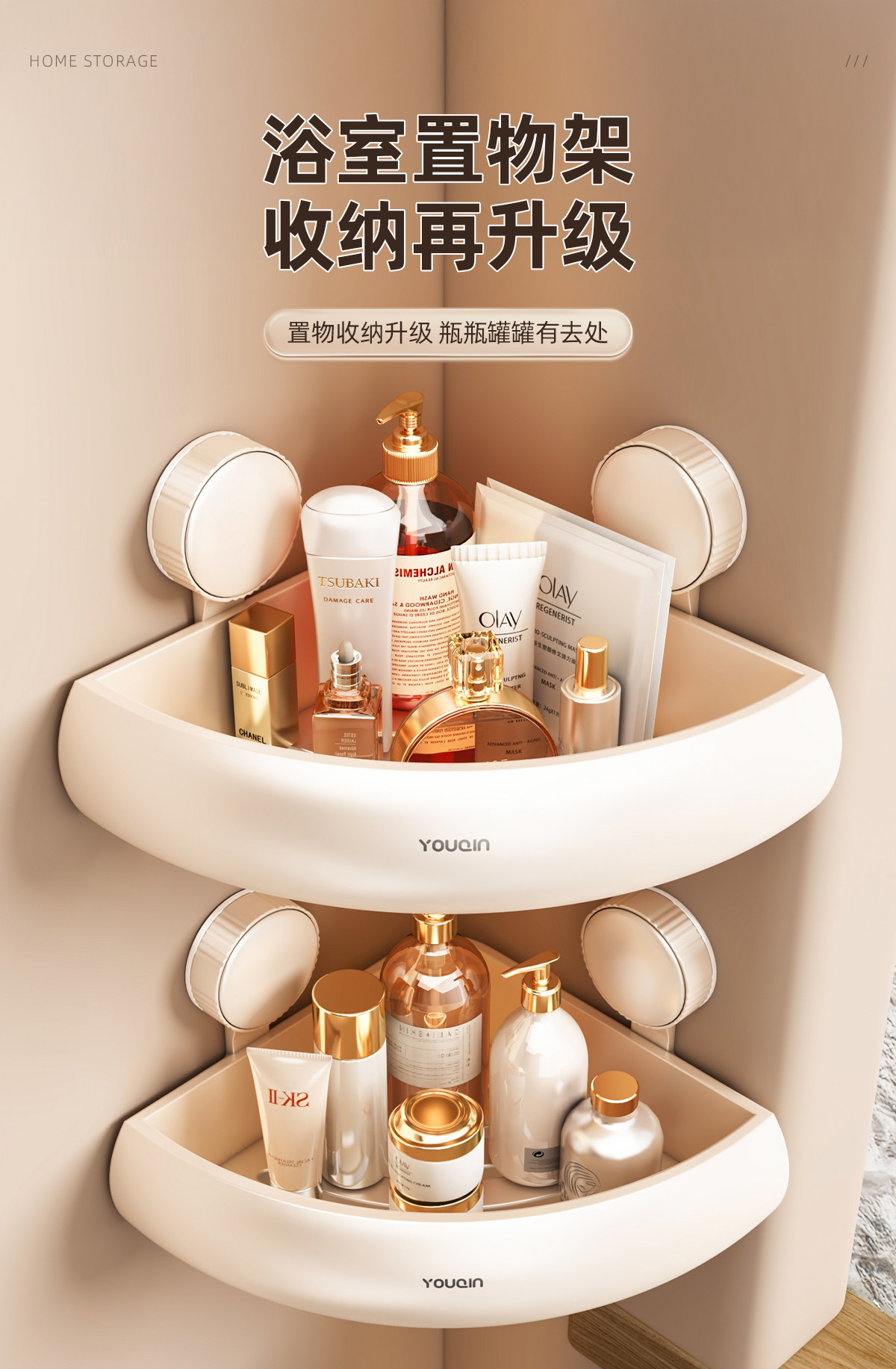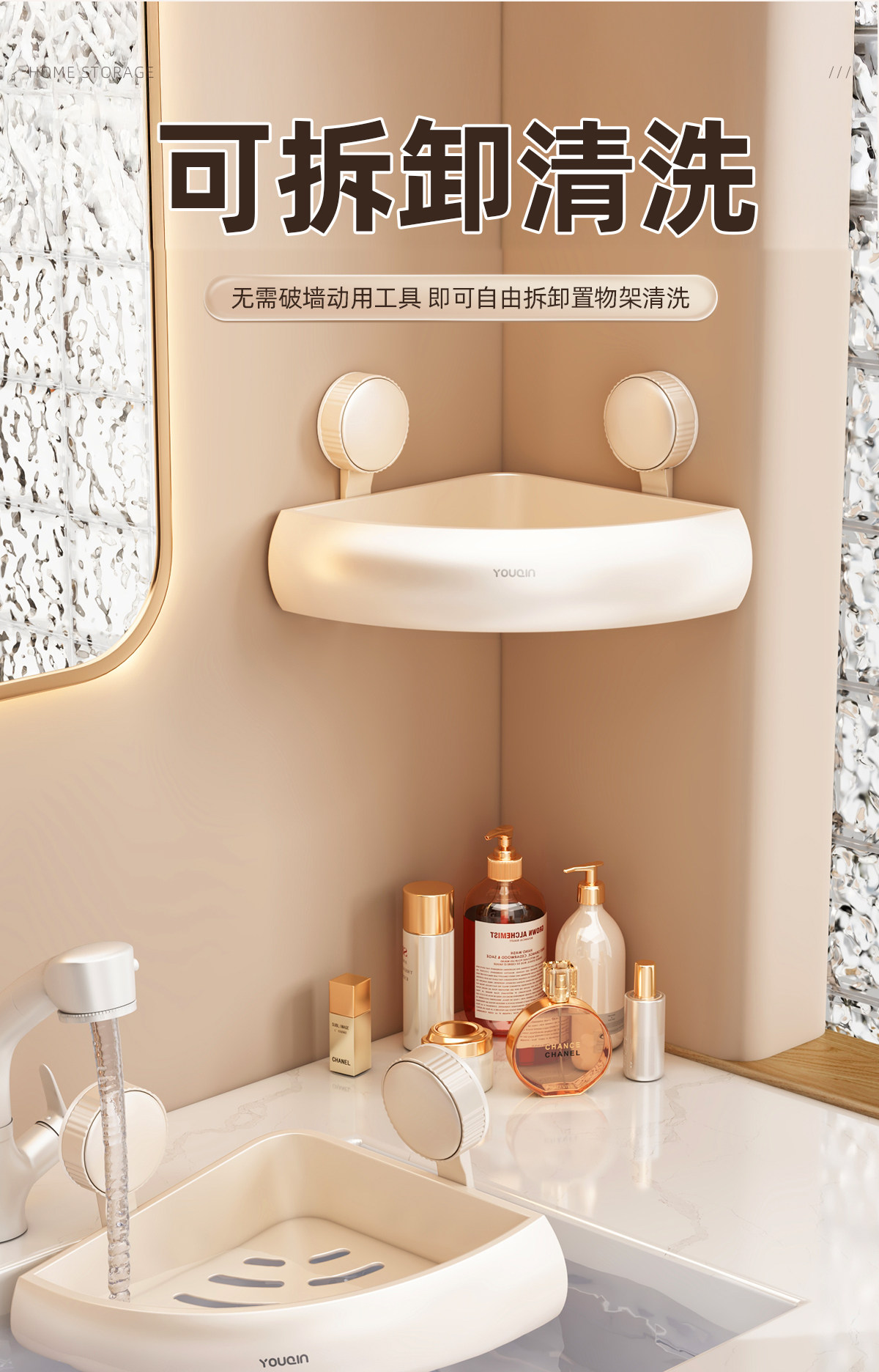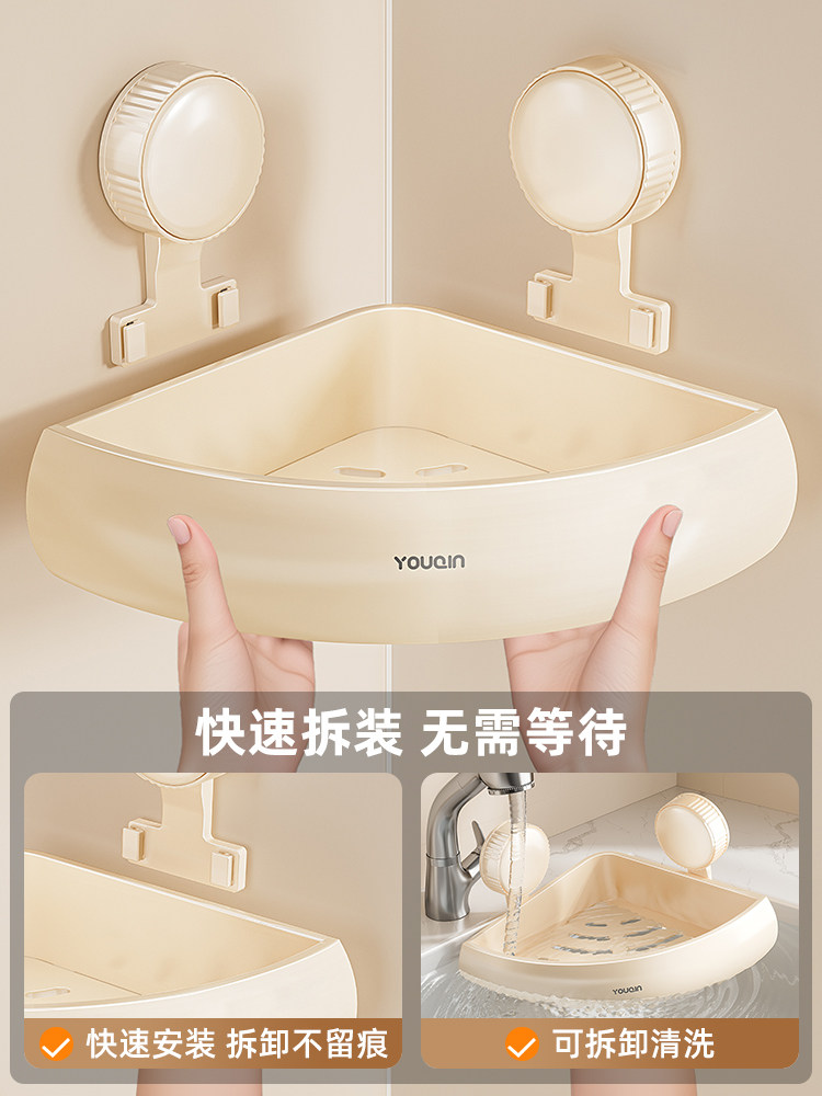 优勤 Молочно-белая полка для ванной комнаты на присоске, без дырокола, унитаз, душевая комната, гель для душа, треугольная корзина для хранения