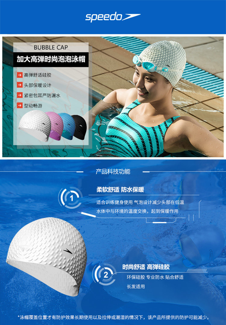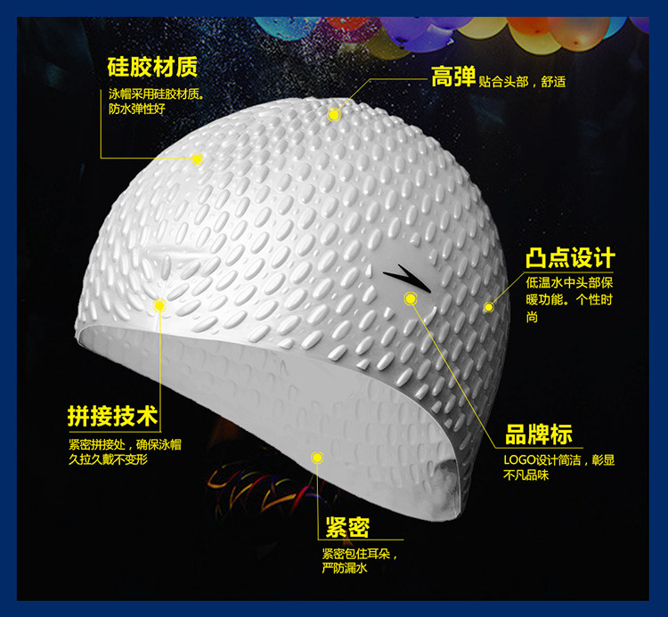 Speedo Speedo плавание шляпа высокая пуля Силиконовая женщина -дамская женщина с большой больной защитой ушей