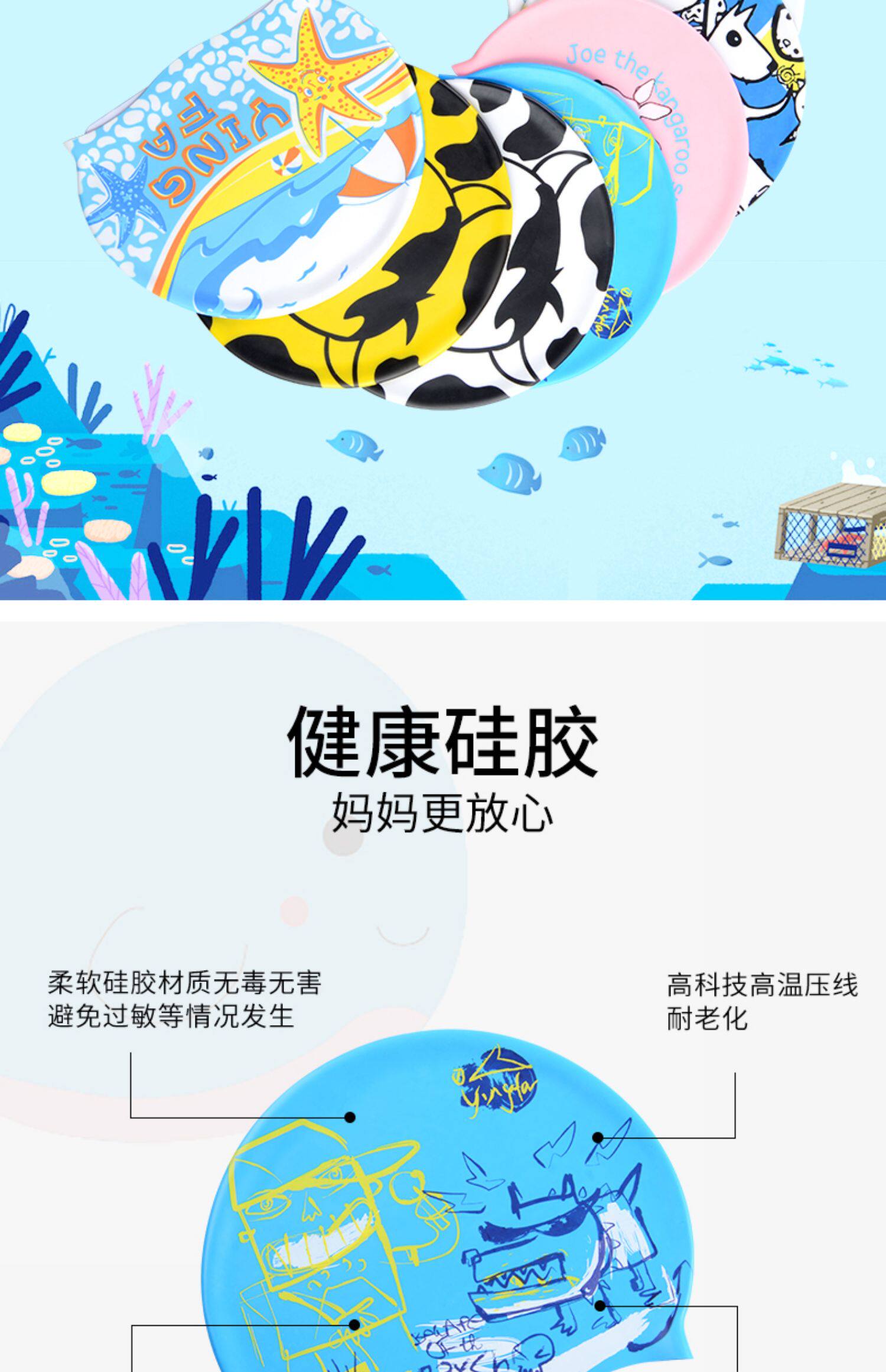 Водонепроницаемая мультяшная плавательная шапочка для мальчиков для плавания