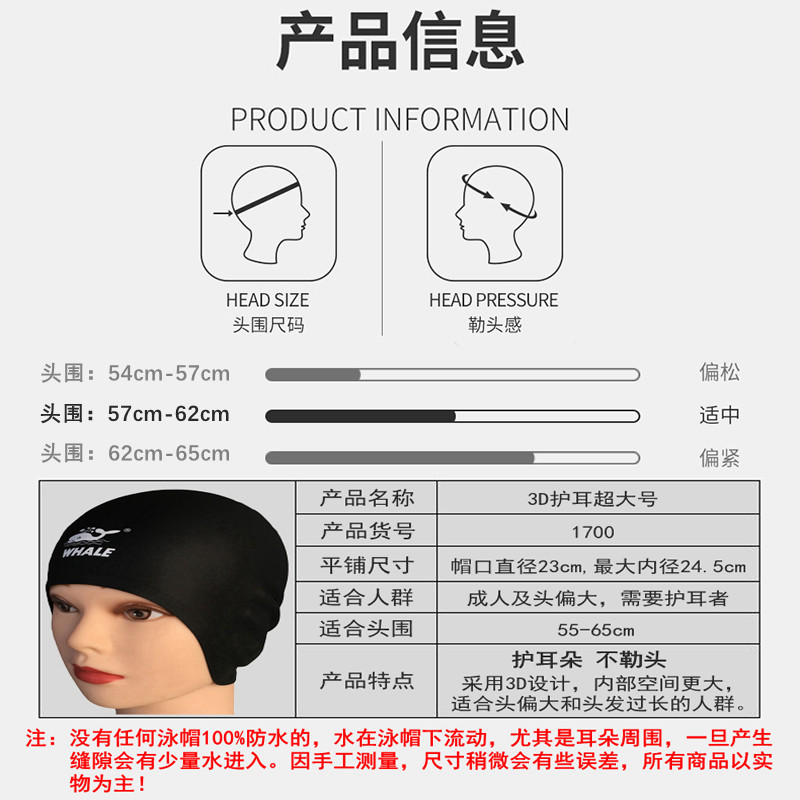 Плавательная шапочка подходит для мужчин и женщин, водонепроницаемая большая шапка для плавания, 3D