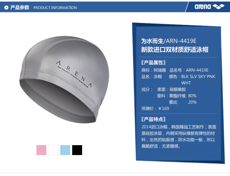 Arena arina мужчин -арендаторы двойной материалы плавание шляпа удобное дыхание arn4419 столовая подлинная