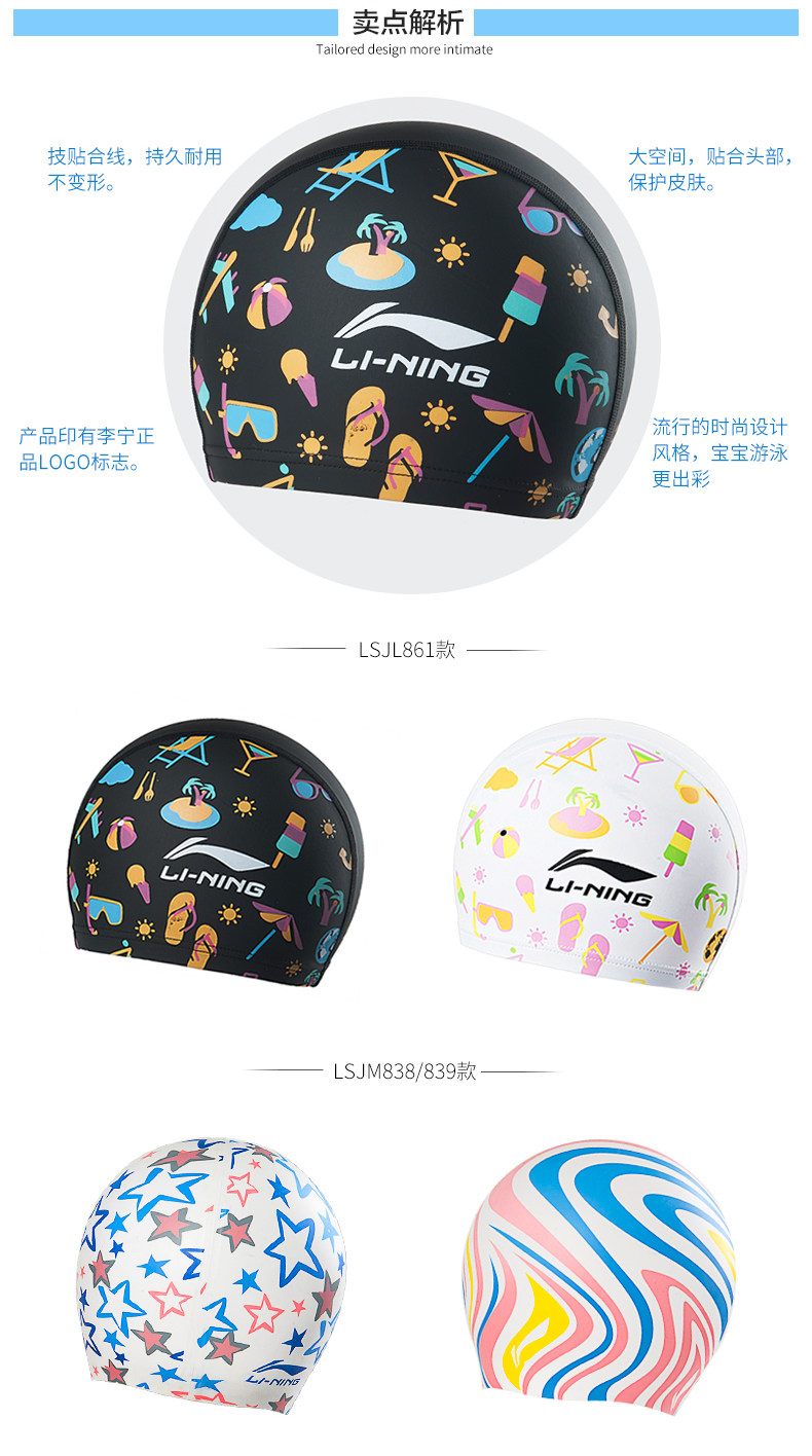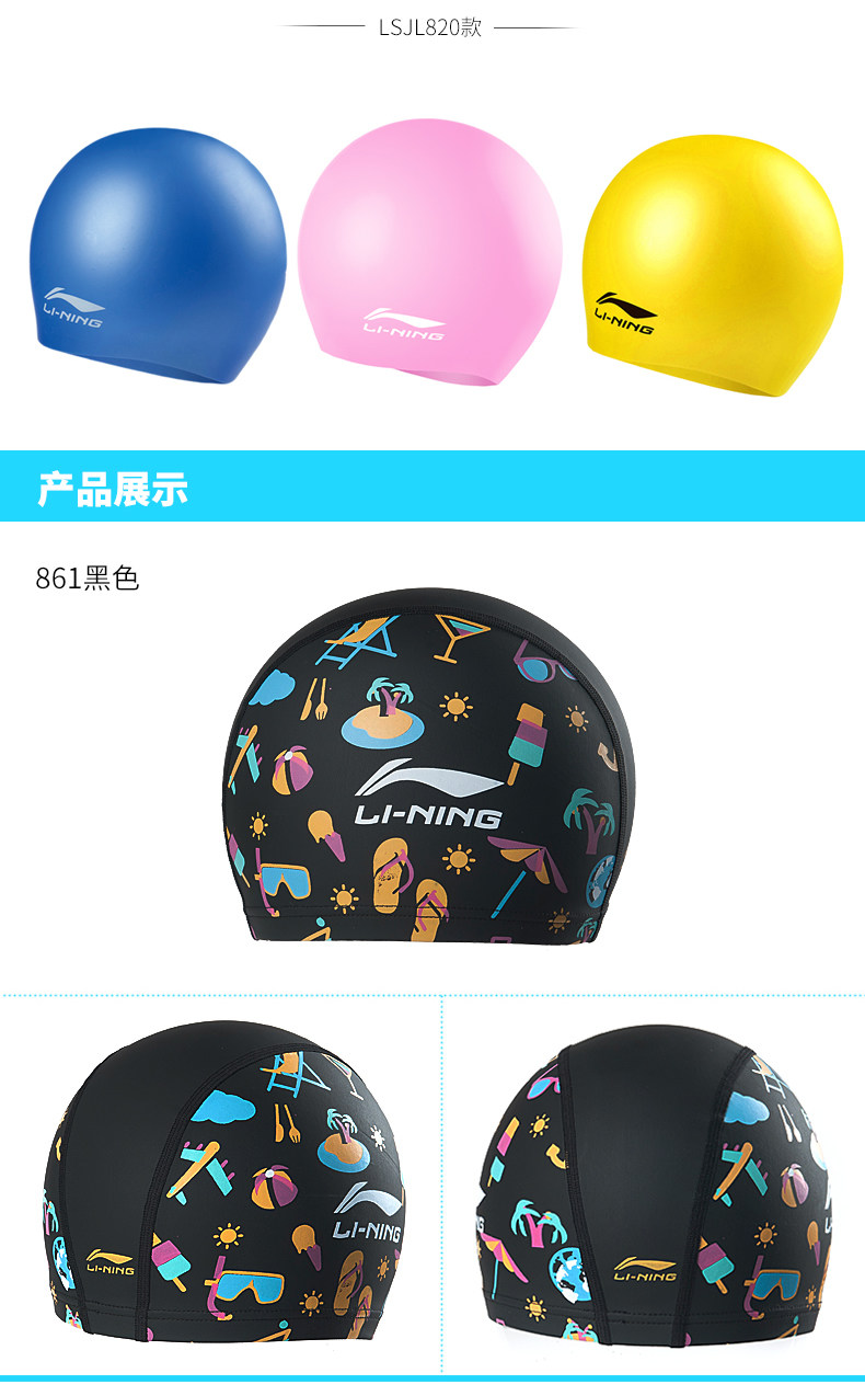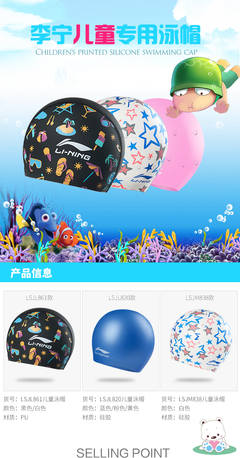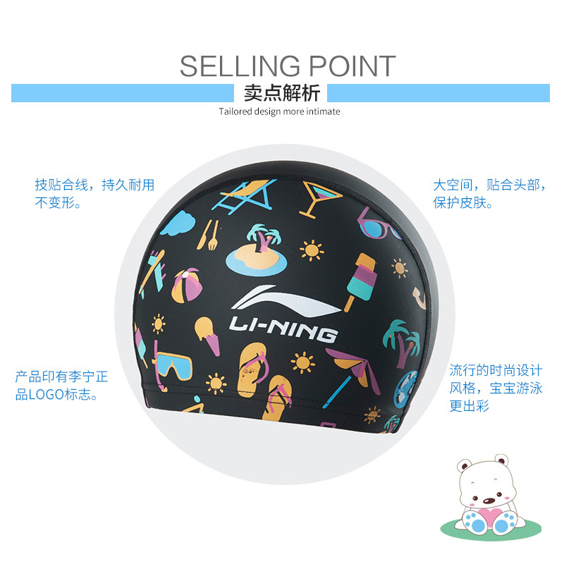 Li Ning, водонепроницаемая полиуретановая плавательная шапочка для плавания для мальчиков для тренировок, подходит для подростков