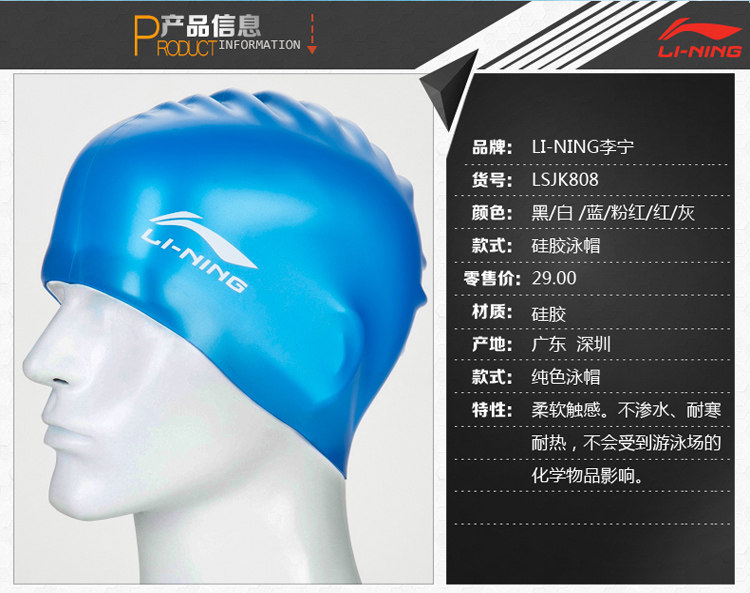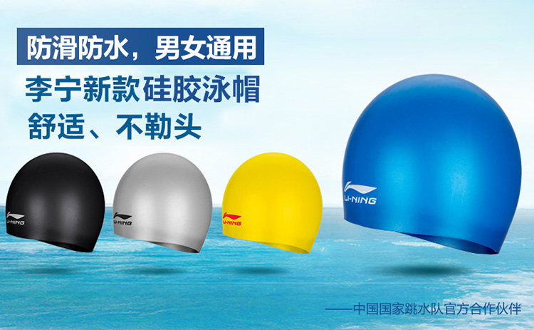 Li Ning, плавательная шапочка, водонепроницаемая шапка подходит для мужчин и женщин, силиконовый плавательный аксессуар
