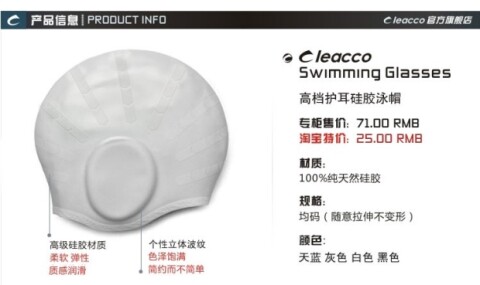 Ухо -Ear плавательная шляпа Силиконовая уходы уха для силиконовой, силиконовой плавательной шляпы, прохладной плавательной шляпы, мужской и женской граф