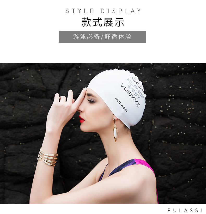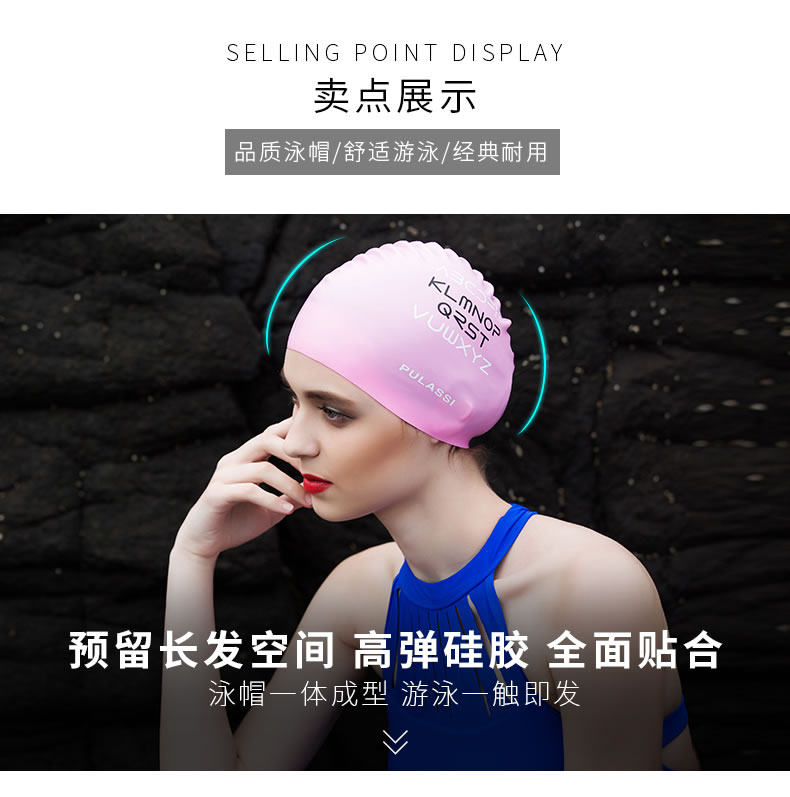 Платто плавание шляпа женская длинные волосы, преданные для взрослых нежелания головы моды, защищающий кремний кремний, водонепроницаемый плавание с печать