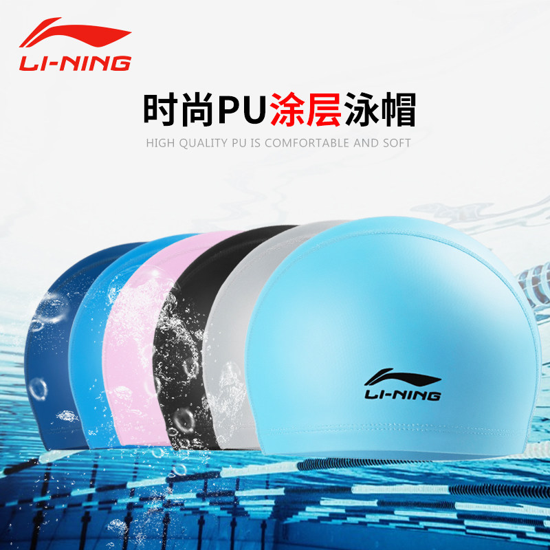 Li Ning, плавательная шапочка подходит для мужчин и женщин, профессиональная летняя водонепроницаемая шапка, полиуретановый комфортный плавательный аксессуар для взрослых