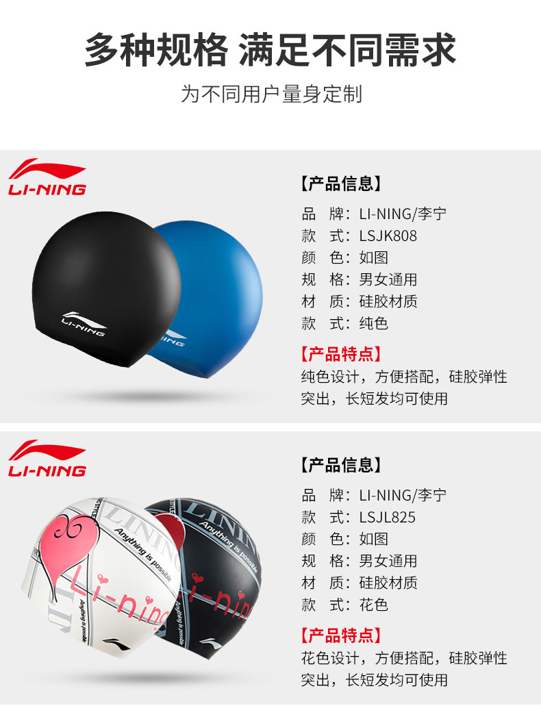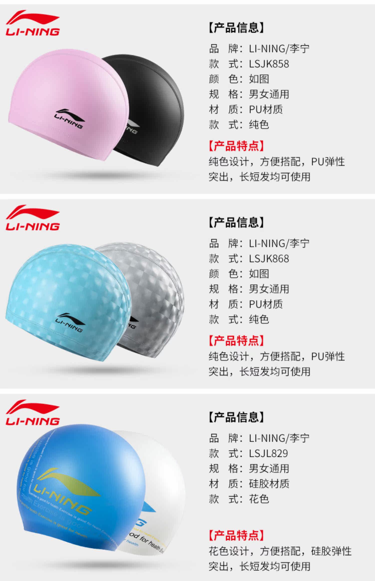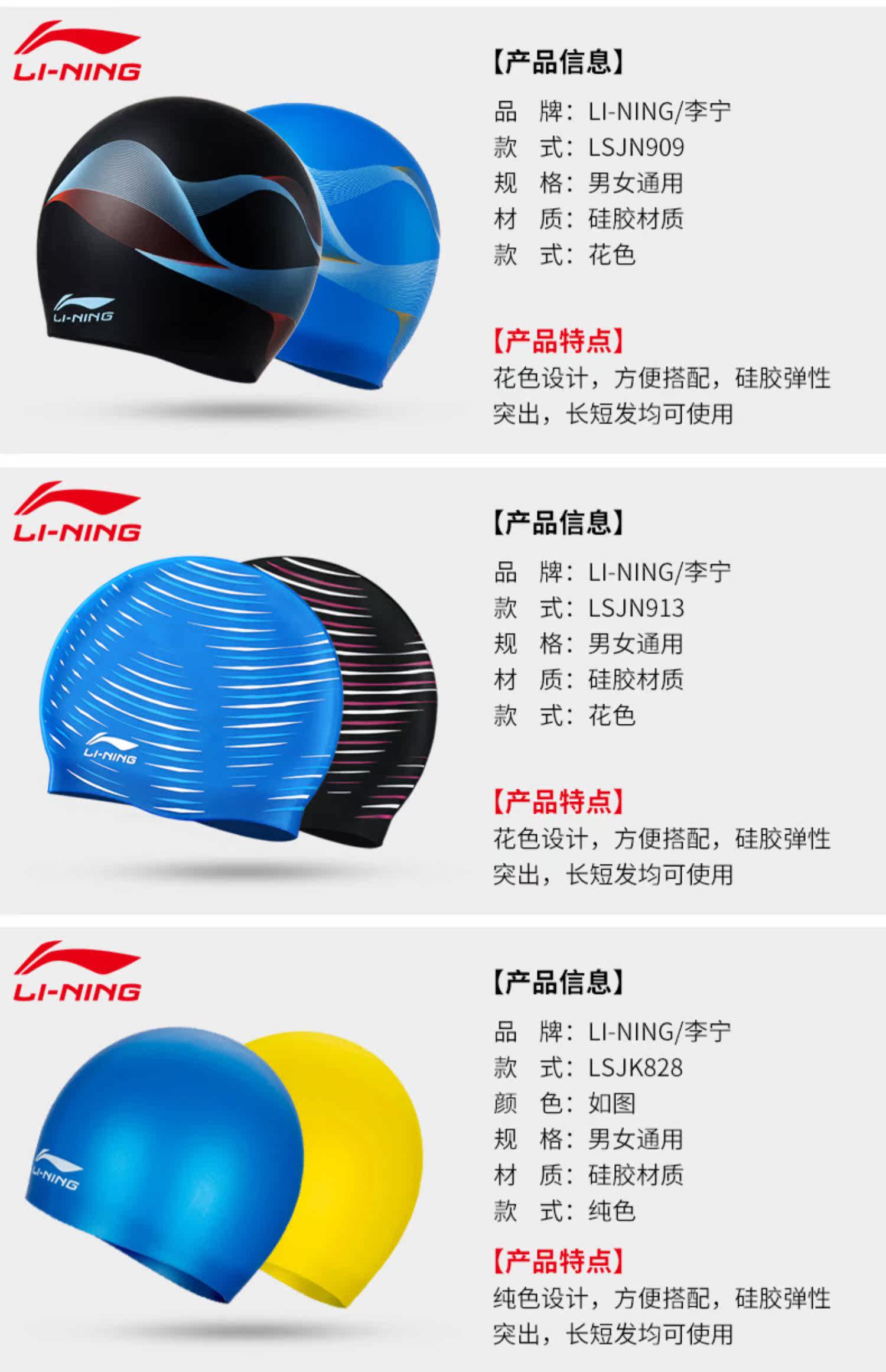 Li Ning, плавательная шапочка подходит для мужчин и женщин, водонепроницаемая комфортная шапка для плавания