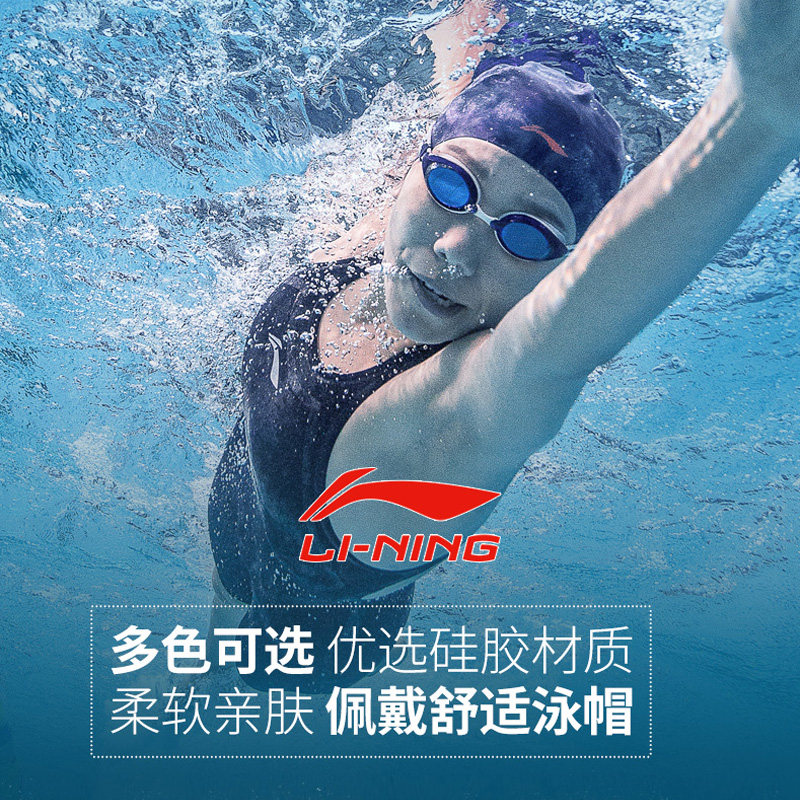 Li Ning, плавательная шапочка для плавания подходит для мужчин и женщин, водонепроницаемая шапка