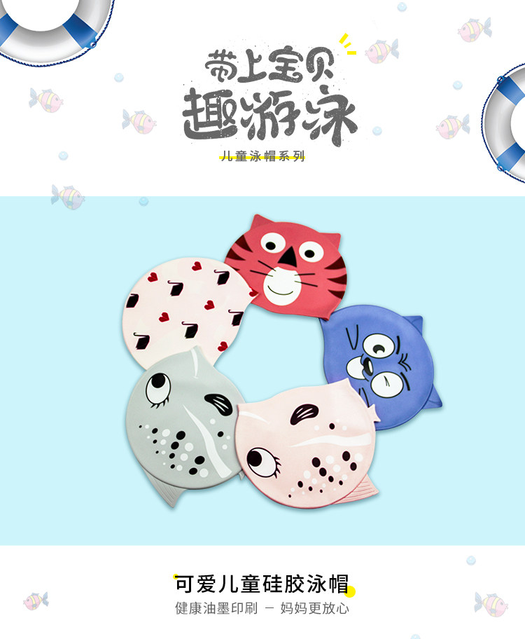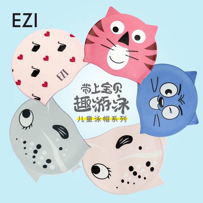 弈姿 Детская мультяшная силиконовая универсальная плавательная шапочка подходит для мужчин и женщин, водонепроницаемый милый плавательный аксессуар для плавания