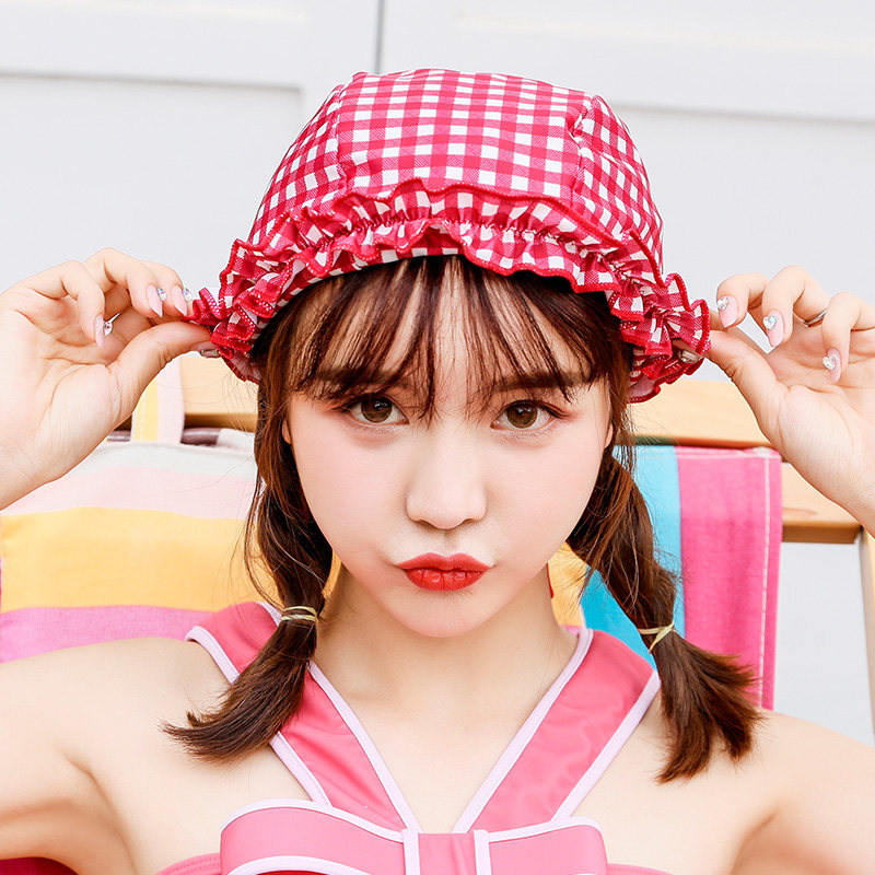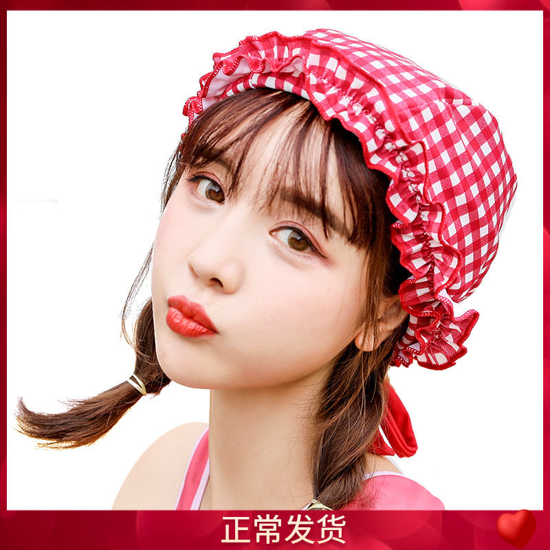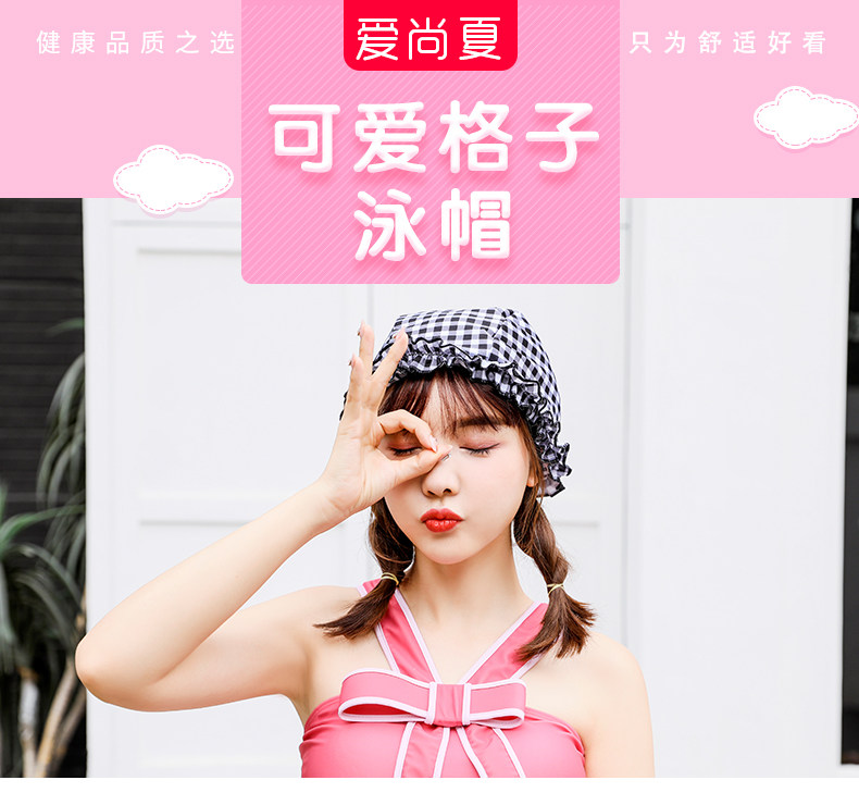 Клетчатый купальник для школьников и студентов, милая плавательная шапочка для плавания, на шнурках