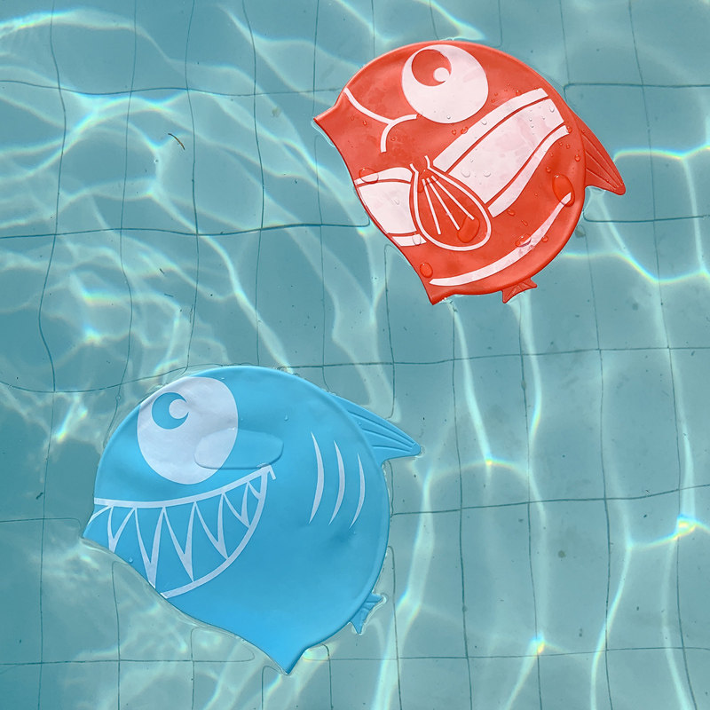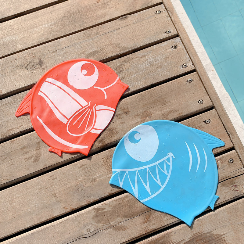 Детская силиконовая милая плавательная шапочка для мальчиков, водонепроницаемая акула, водонепроницаемый комплект для плавания