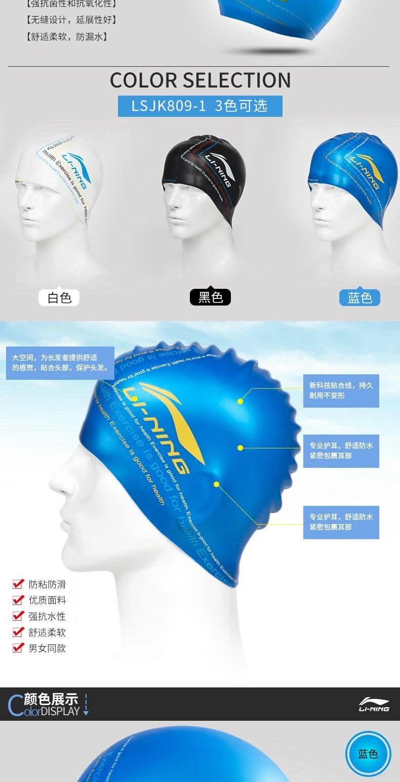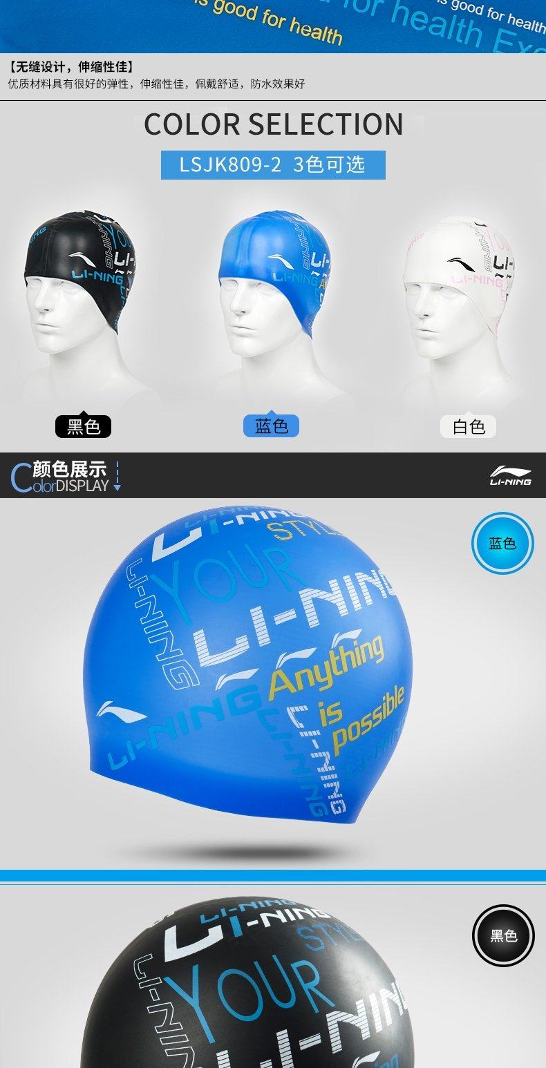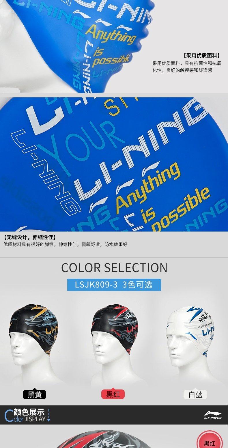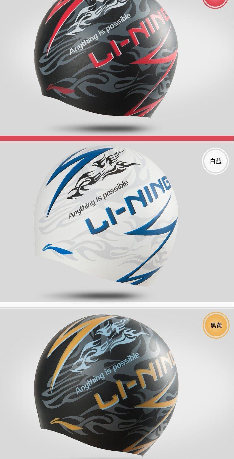 Li Ning, силиконовая плавательная шапочка подходит для мужчин и женщин, профессиональная водонепроницаемая шапка, спортивное быстросохнущее снаряжение для плавания