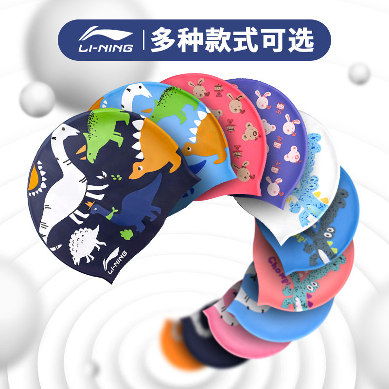 Li Ning, детская силиконовая водонепроницаемая плавательная шапочка для мальчиков, комфортная детская шапочка для плавания, плавательный аксессуар