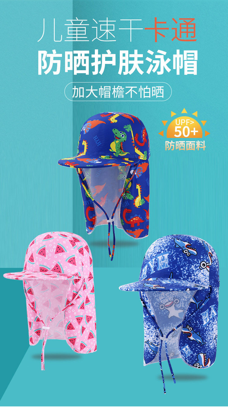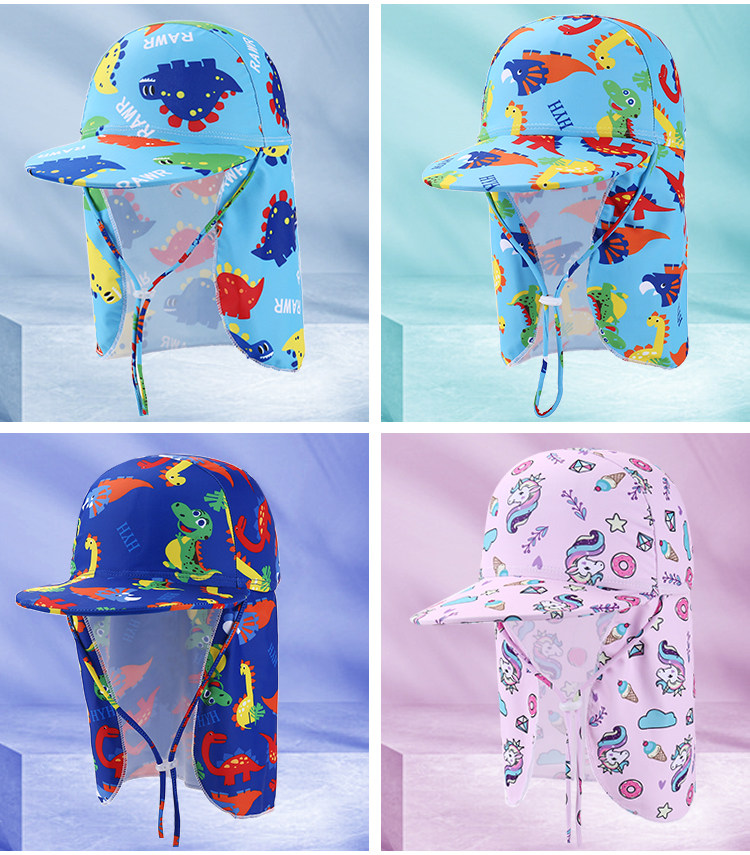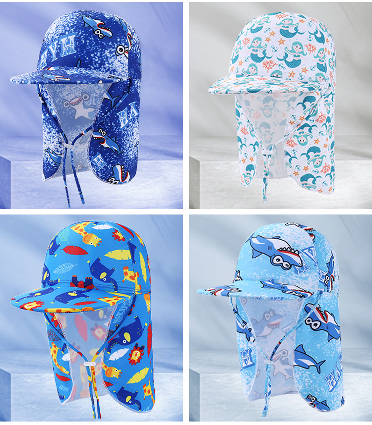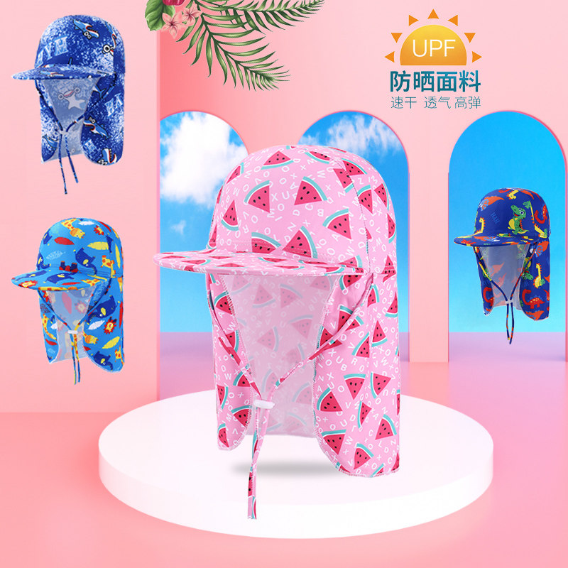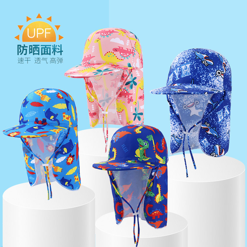 Детская плавательная шапочка, шапка, пляжный солнцезащитный крем для плавания, с защитой шеи