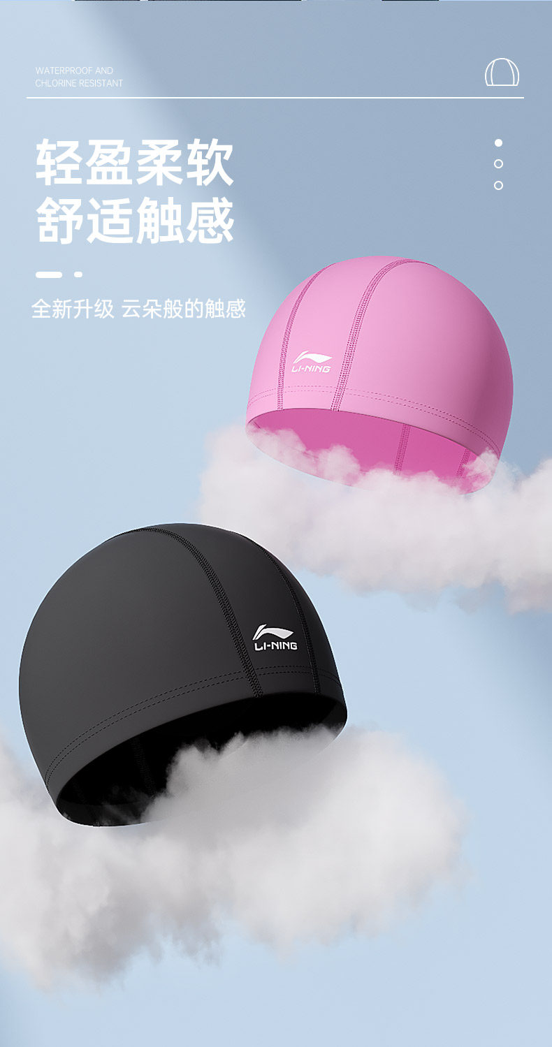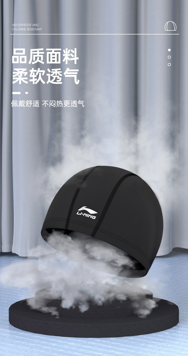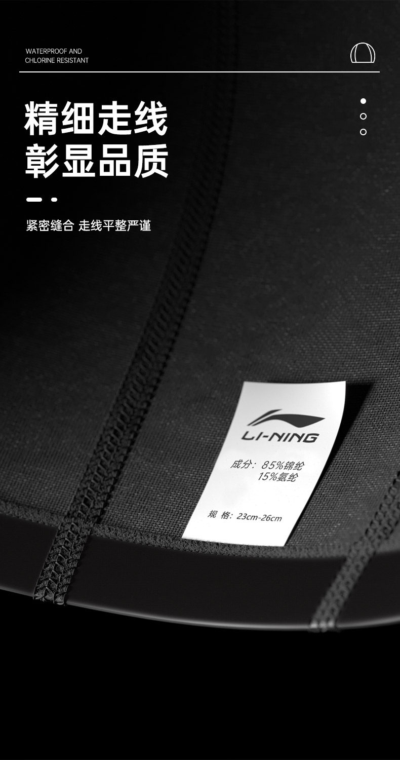 Li Ning, комфортная плавательная шапочка для плавания для взрослых подходит для мужчин и женщин, водонепроницаемый профессиональный большой плавательный аксессуар