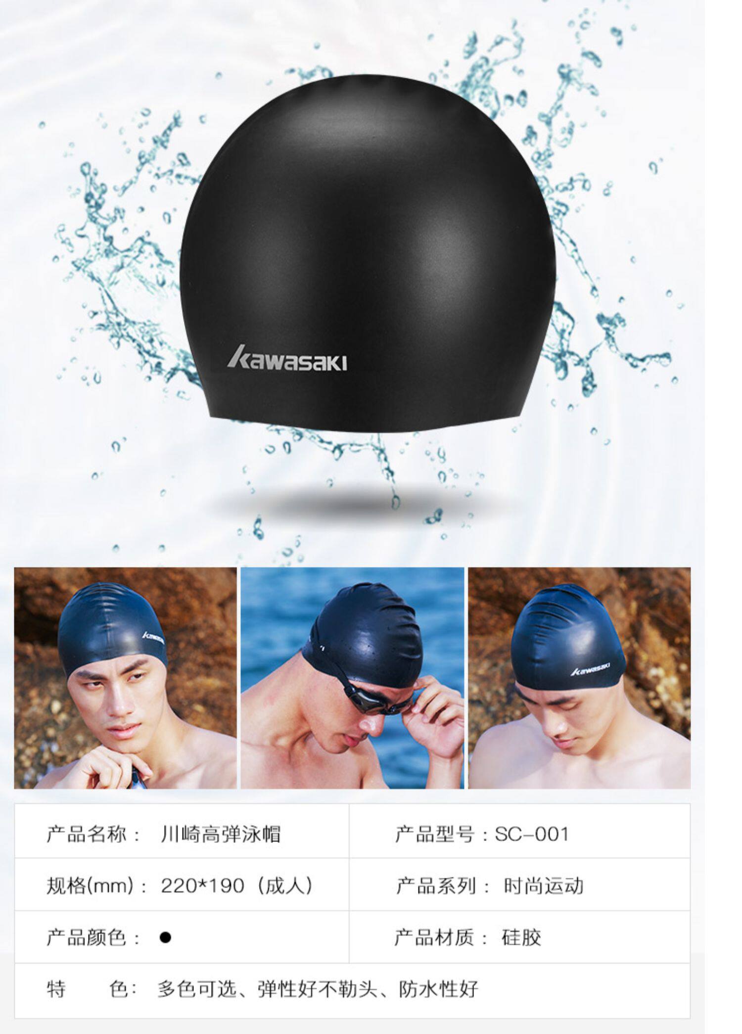Kawasaki, силиконовая водонепроницаемая модная плавательная шапочка для взрослых для плавания